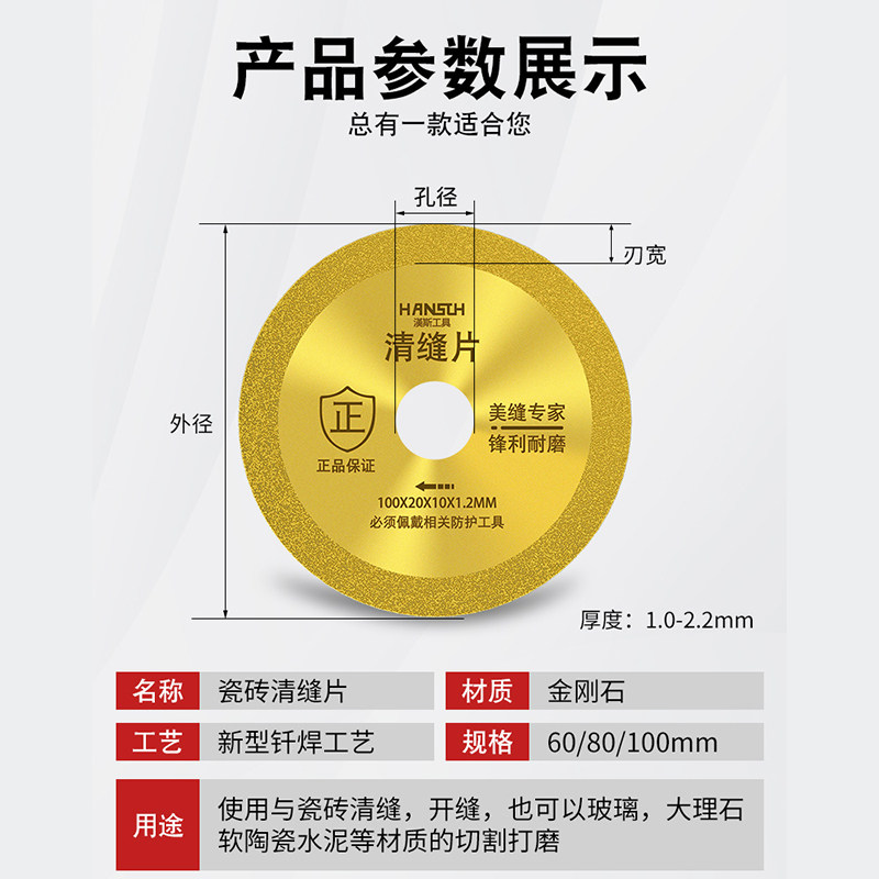 📚 汉斯瓷砖美缝切割片清缝角磨机锯片金刚砂开缝瓷砖清缝工具专用