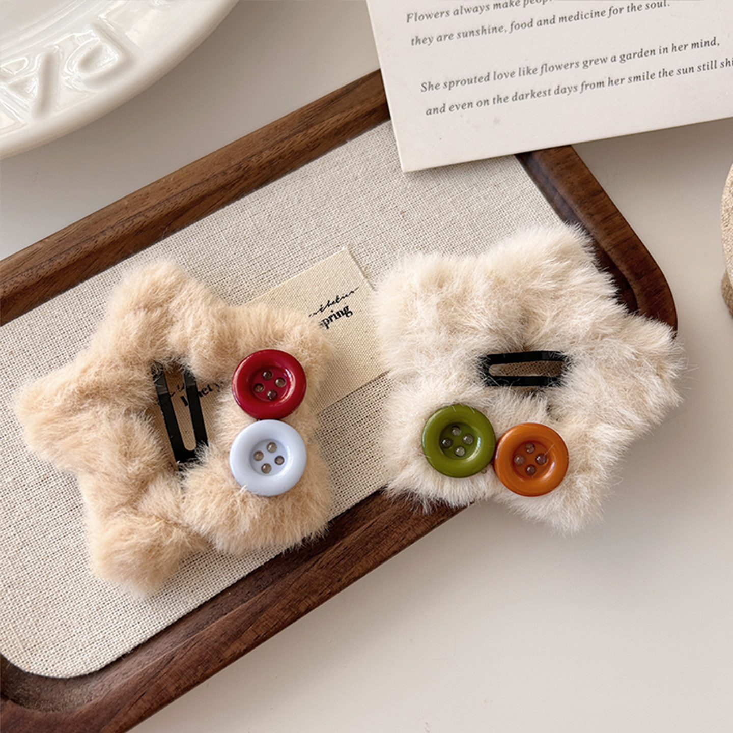 💫秋冬毛绒星星纽扣发夹,让你的发型瞬间升级💫