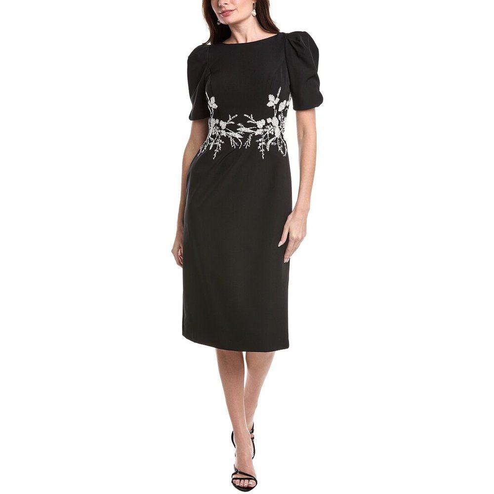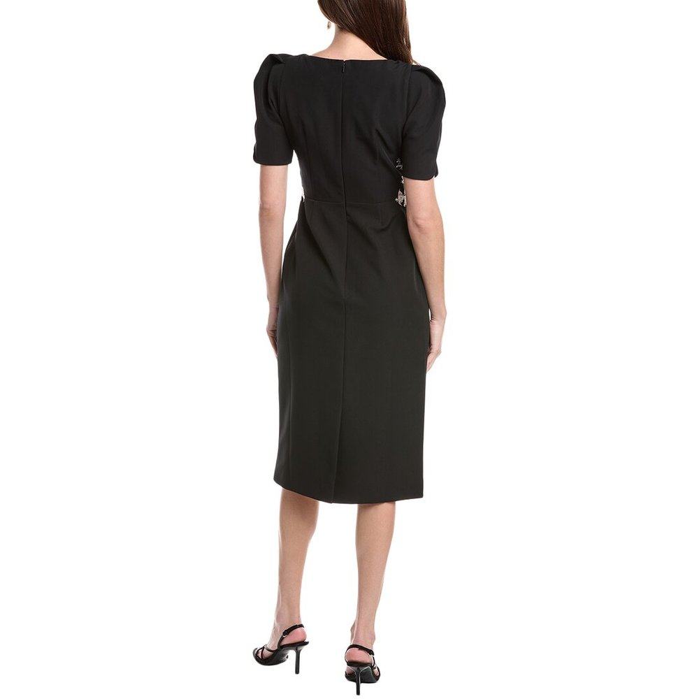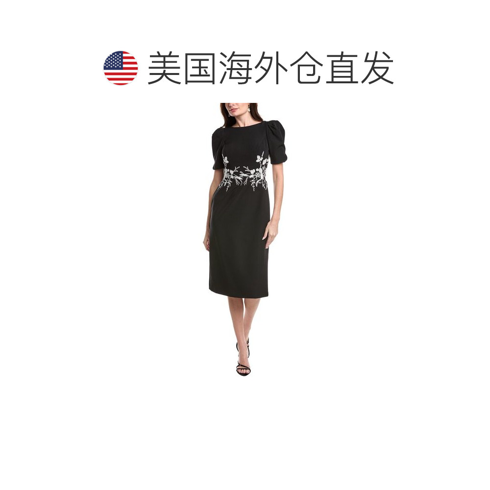📚 自营Rene Ruiz Short Sleeve Crepe Sheath Midi Dress - black