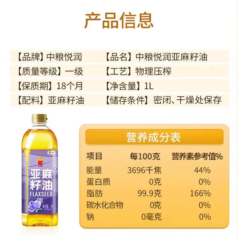📚 中粮悦润亚麻籽油新疆食用油胡麻油1Lx2礼盒一级冷榨