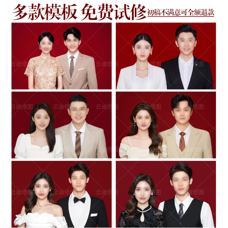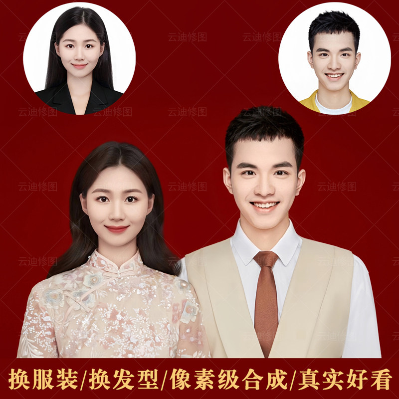 📚 结婚登记照P图修图结婚照PS精修换服装换发型证件照