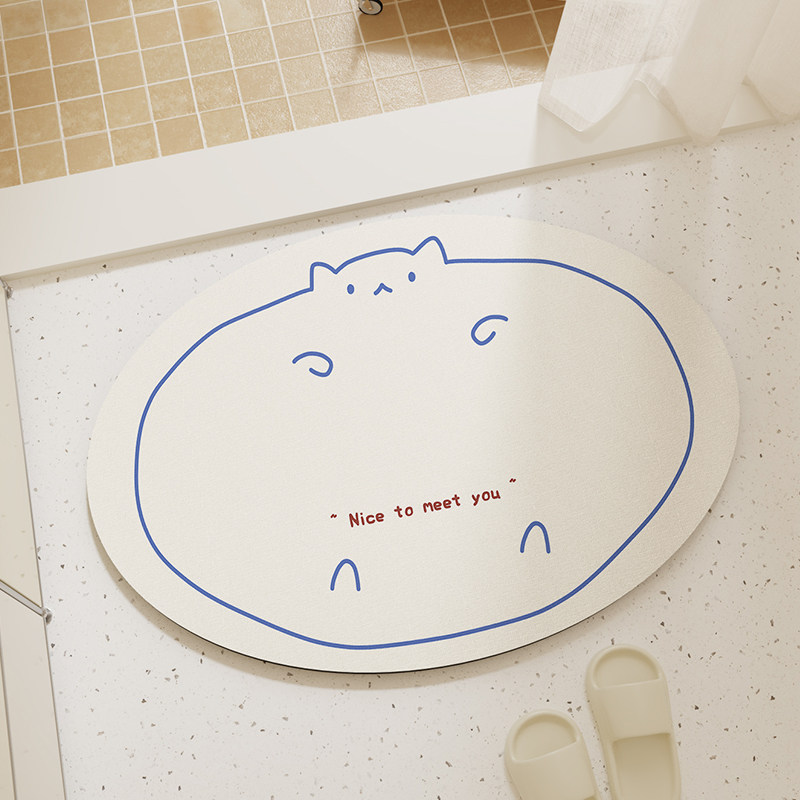 🎨首先,说说它的外观设计。这款地垫采用了卡通猫咪的形象设计,可爱又萌萌哒,绝对是家中的小亮点。硅藻泥材质,质地细腻,吸水性强,清洁起来也非常方便。而且,它还具有防滑防摔的功能,让你的猫咪在卫生间门口玩耍时更加安全。