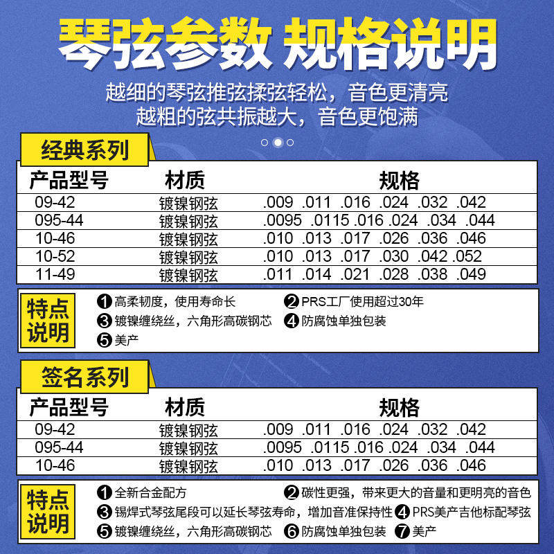 📚 美产正品PRS 电吉他琴弦 classic Signature经典签名款一套六根装