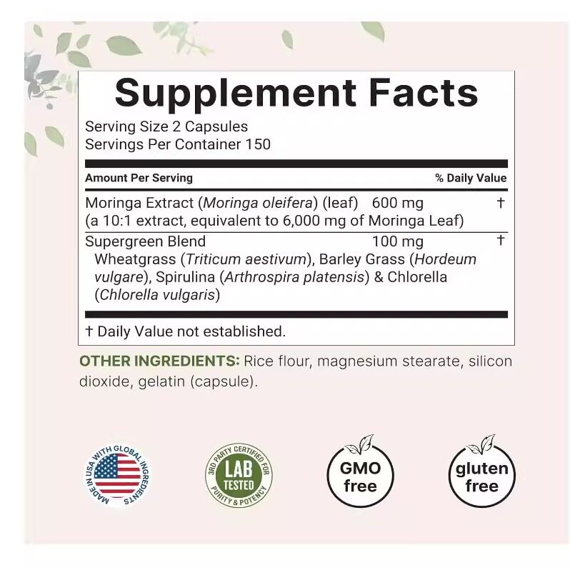 📚 美国成人辣木籽胶囊Moringa Oleifera 6000mg300粒大包装保健家人