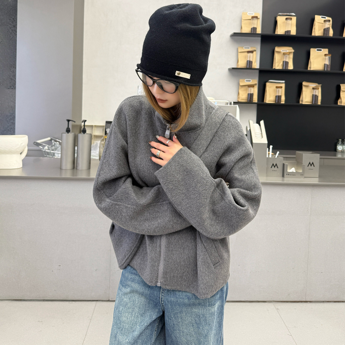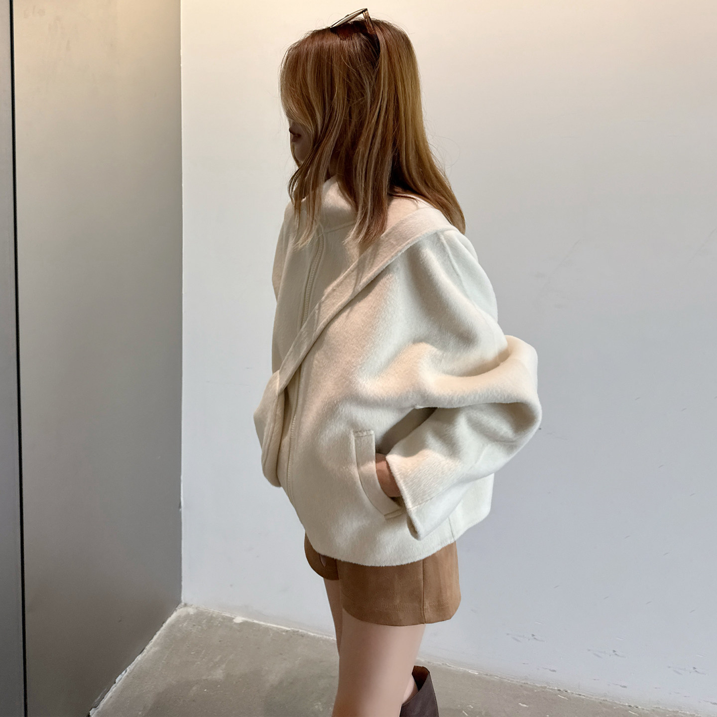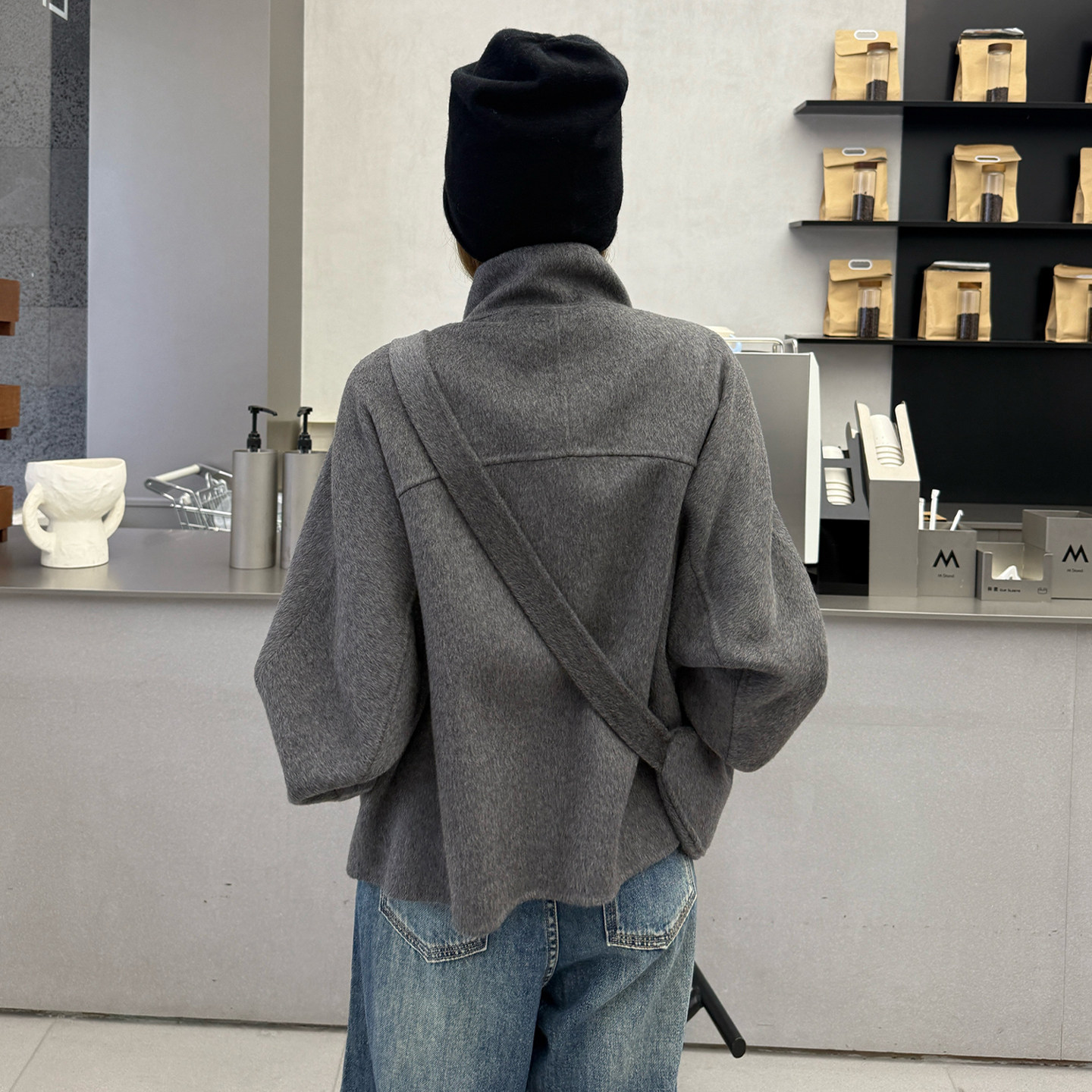 📚 小个子斗篷韩版立领双面羊绒羊毛短款大衣女宽松显瘦百搭通勤外套