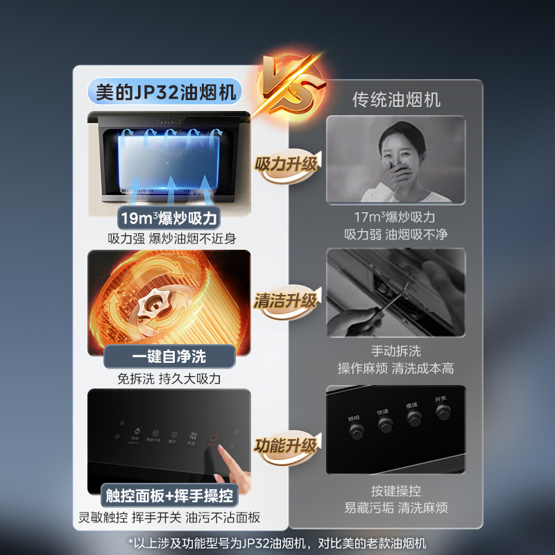 📚 美的JP32抽油烟机抽吸油机抽烟机家用厨房大吸力侧吸小型出租房用