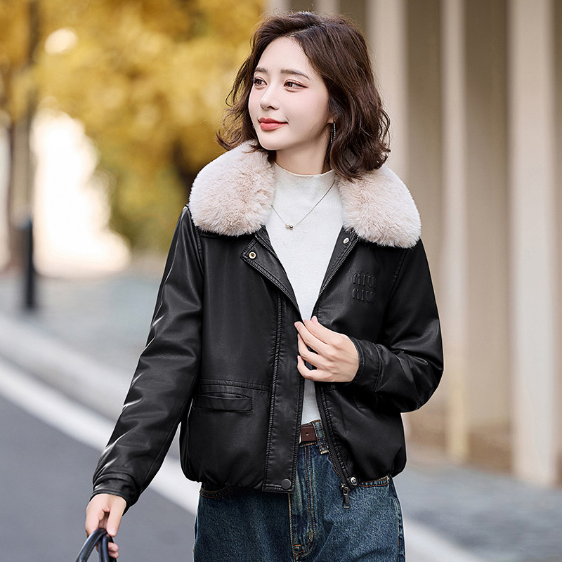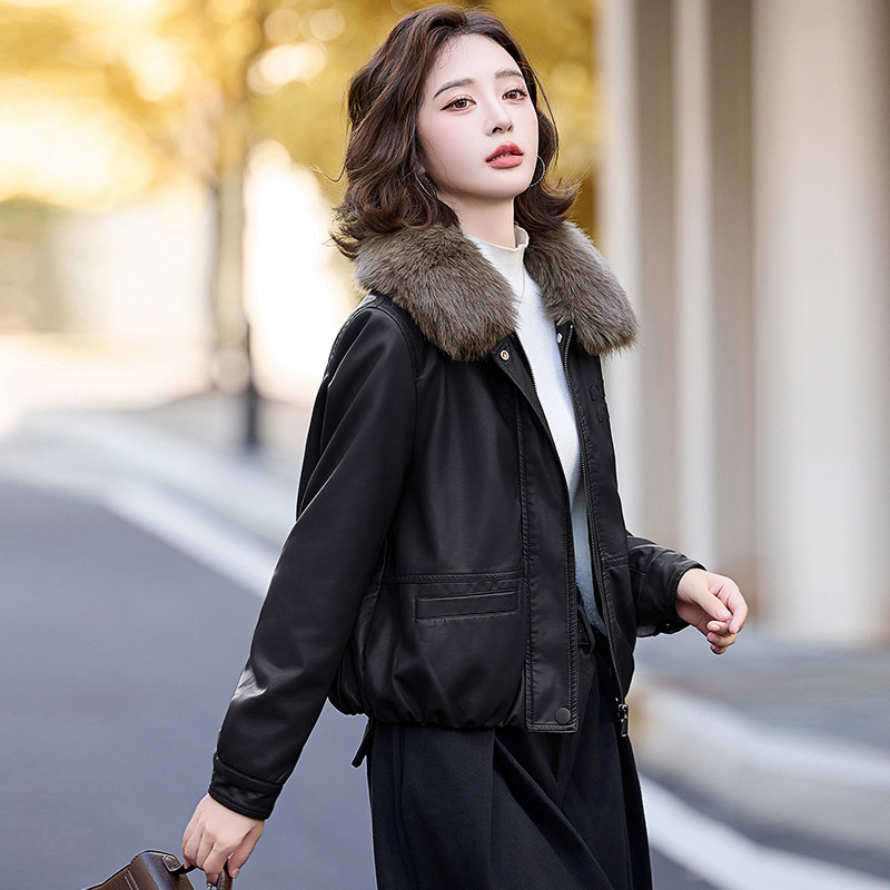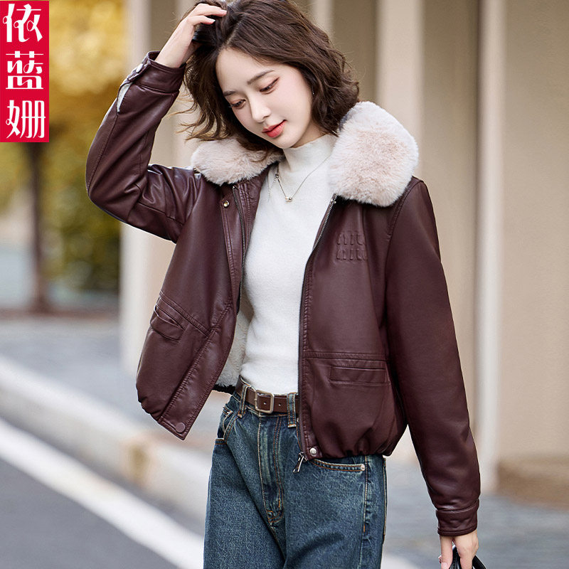 📚 加绒皮衣外套女短款2025年新款冬季时尚宽松小个子加厚皮夹克棉服