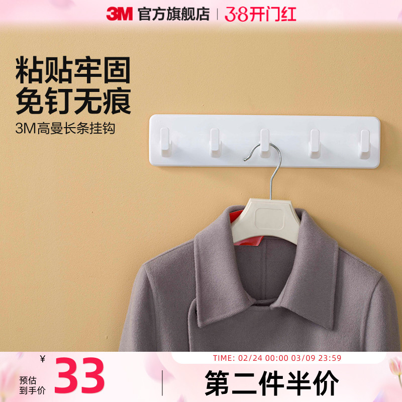 📚 3M高曼常规挂钩无痕胶条多功能挂钩强力衣服挂钩卧室门后挂钩