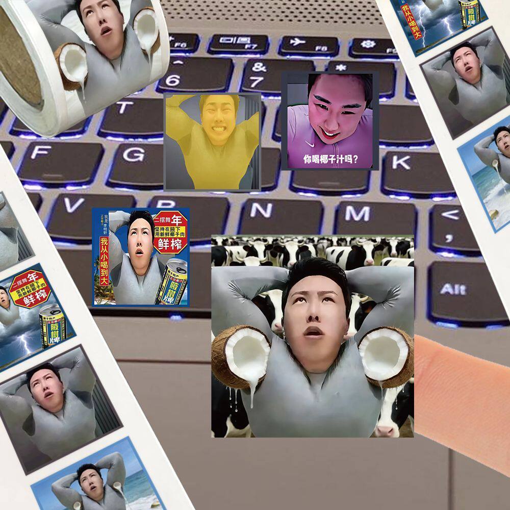 📚 2000贴李明轩椰子汁表情包卷卷贴网红恶搞夜来香抽象装饰桌面贴画