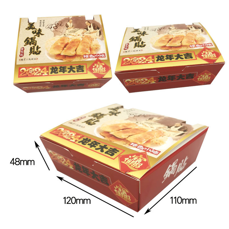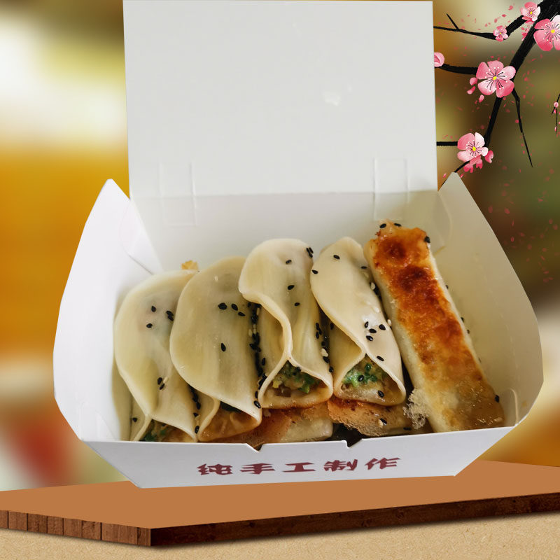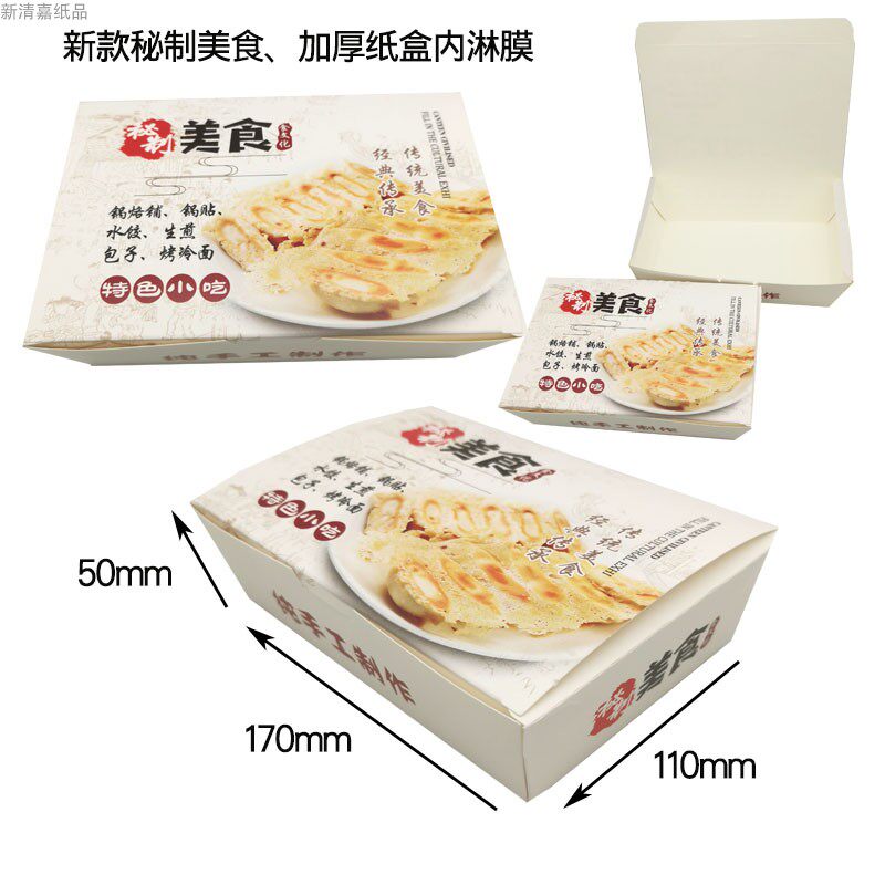 📚 新品一次性锅贴打包盒600个双透气孔长方形外卖盒锅烙铺牛皮纸盒