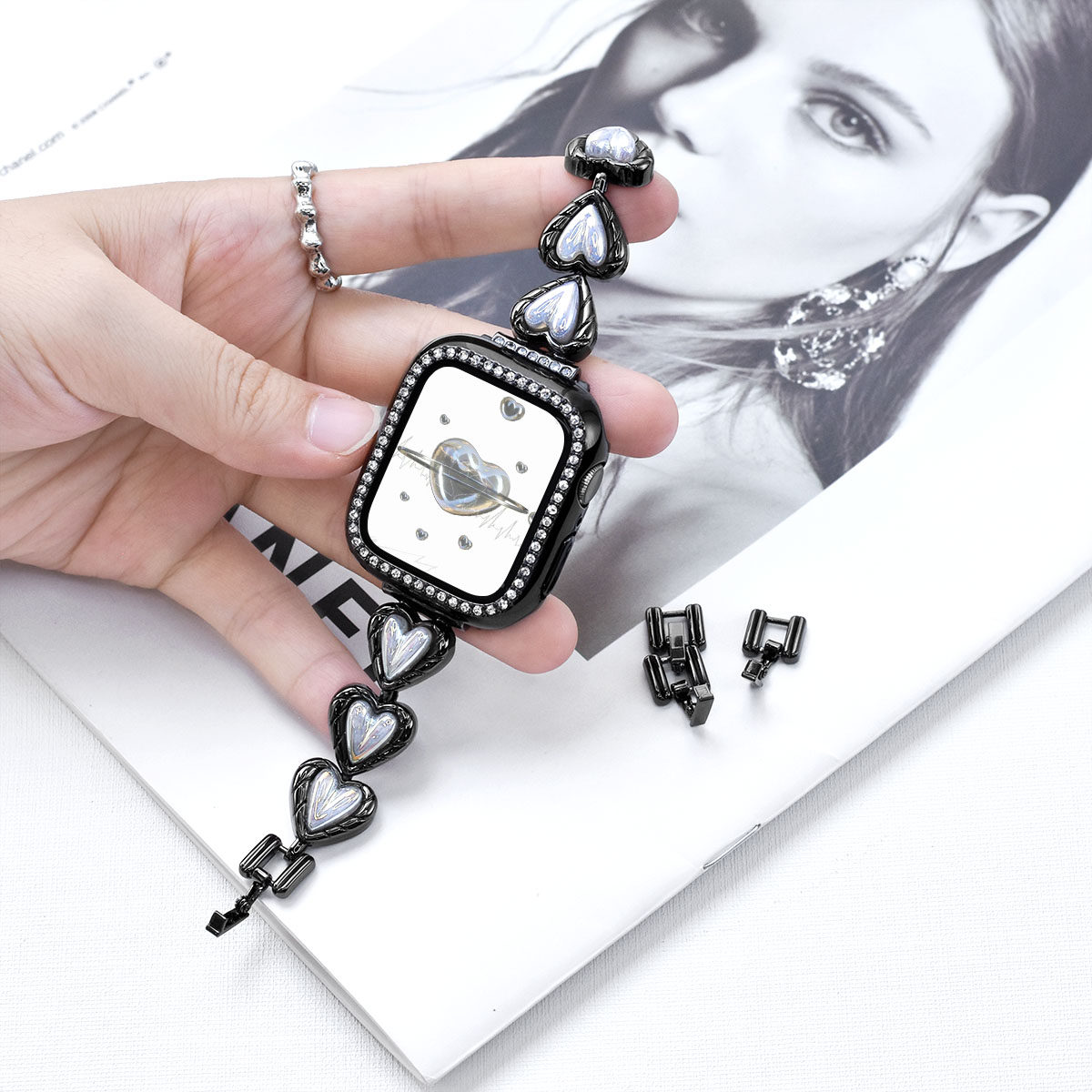 48¥ CZ007 ugrSUEcnoPA¥ https://m.tb.cn/h.i3pbZ8E 适用于iwatch S10爱心表带applewatch S9金属表带S7/8代苹果手表SE/6/5/4镭射贝母不锈钢手链新款高级感夏 --------------------- 【原售价】90元 【现售价】45元。