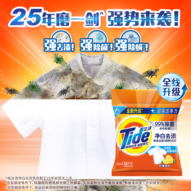 📚 汰渍洗衣粉3.1斤净白去渍除菌除螨柠檬持久留香官方正品家庭装