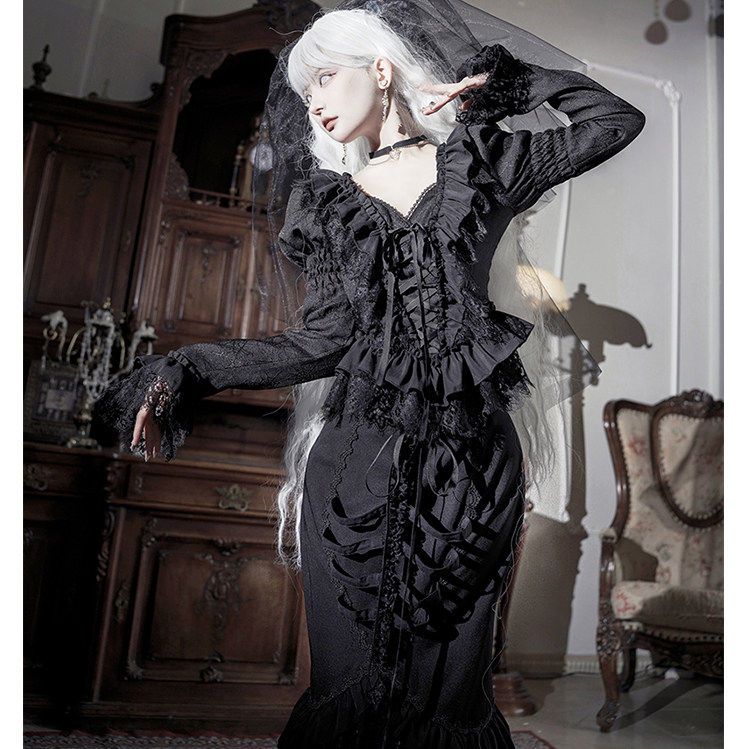 📚 【定金展示】-美人鱼鱼尾裙-肋骨哥特-收腰鱼尾裙-寡妇风修身高腰