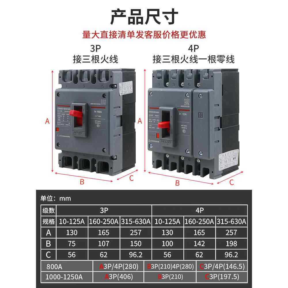 📚 德力西空气开关CDM3塑壳断路器三相四线630a家用电闸空开100a250a