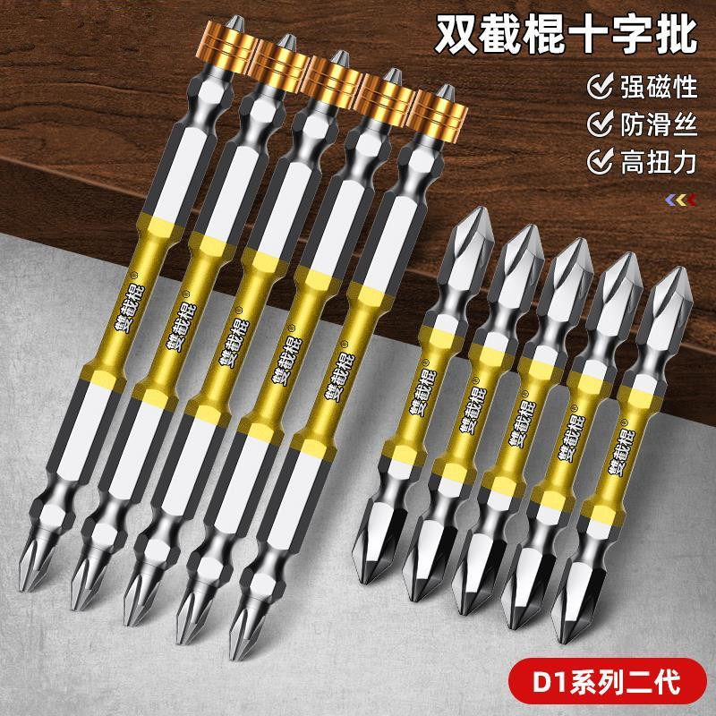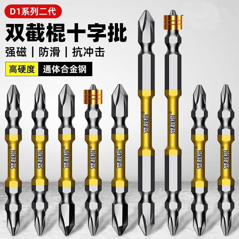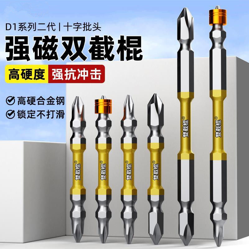 📚 双截棍批头十字强磁防滑钨钢高硬度电动螺丝刀头六角柄双节棍披头