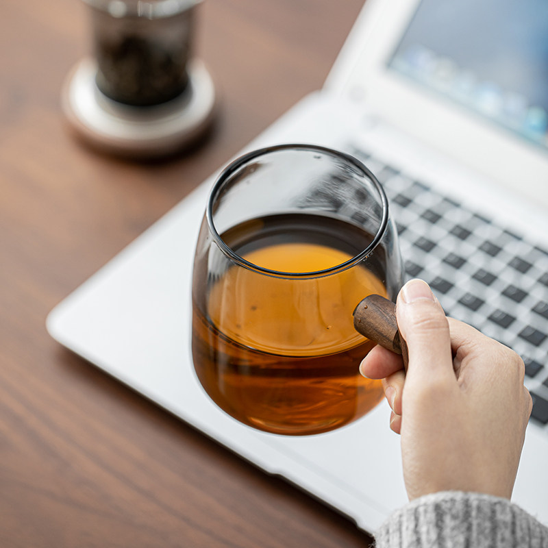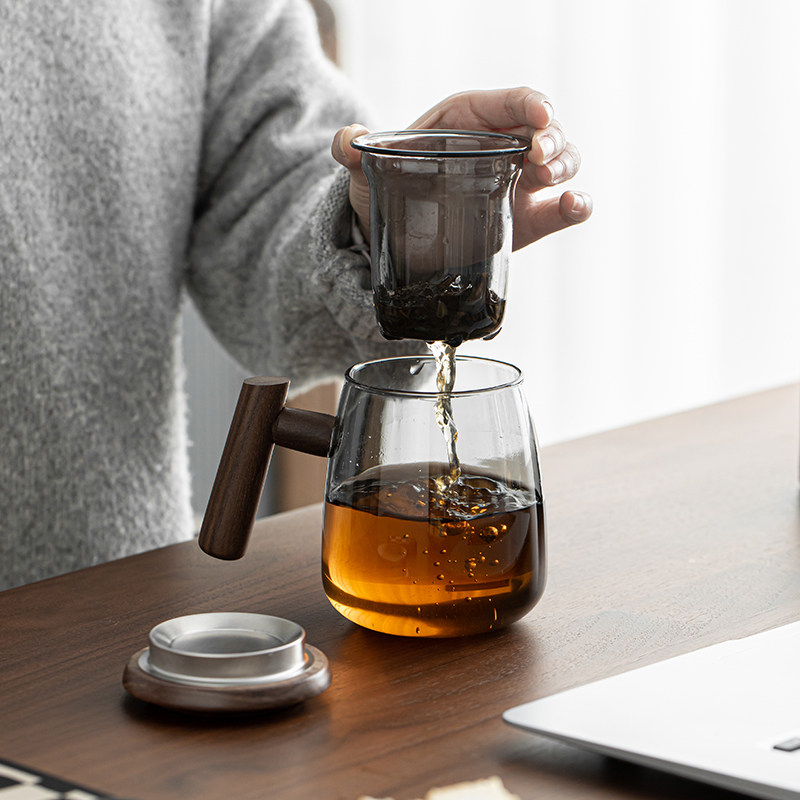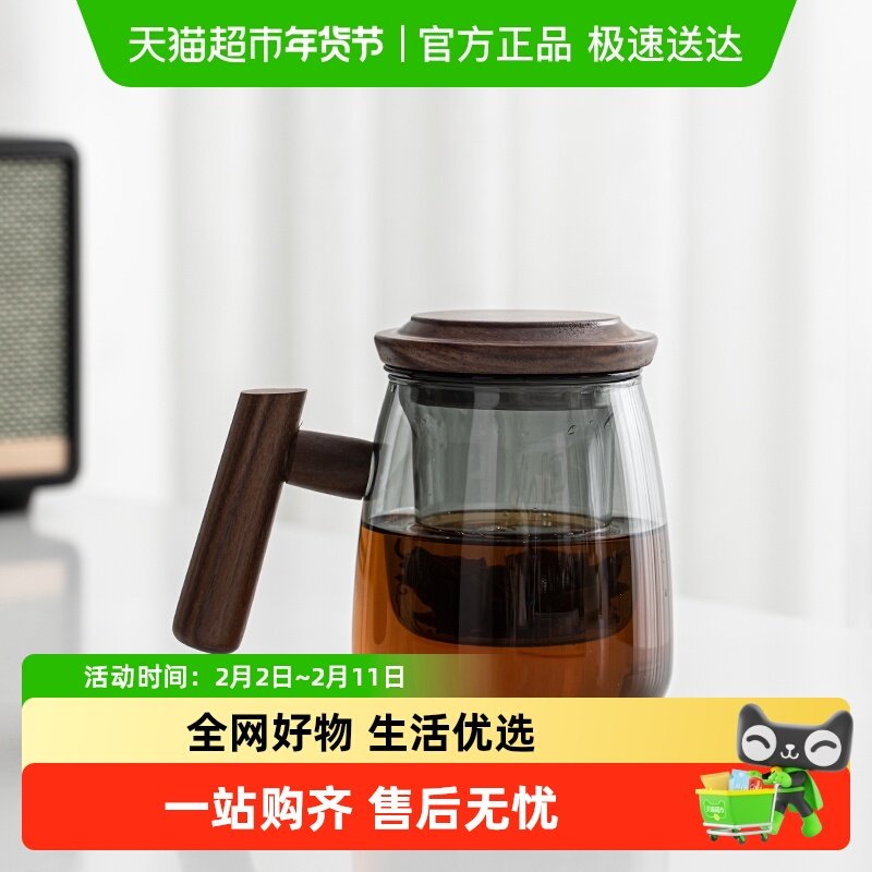 📚 苏氏陶瓷 君悦玻璃杯泡茶杯茶水分离高硼硅 玻璃木盖 透黑办公杯