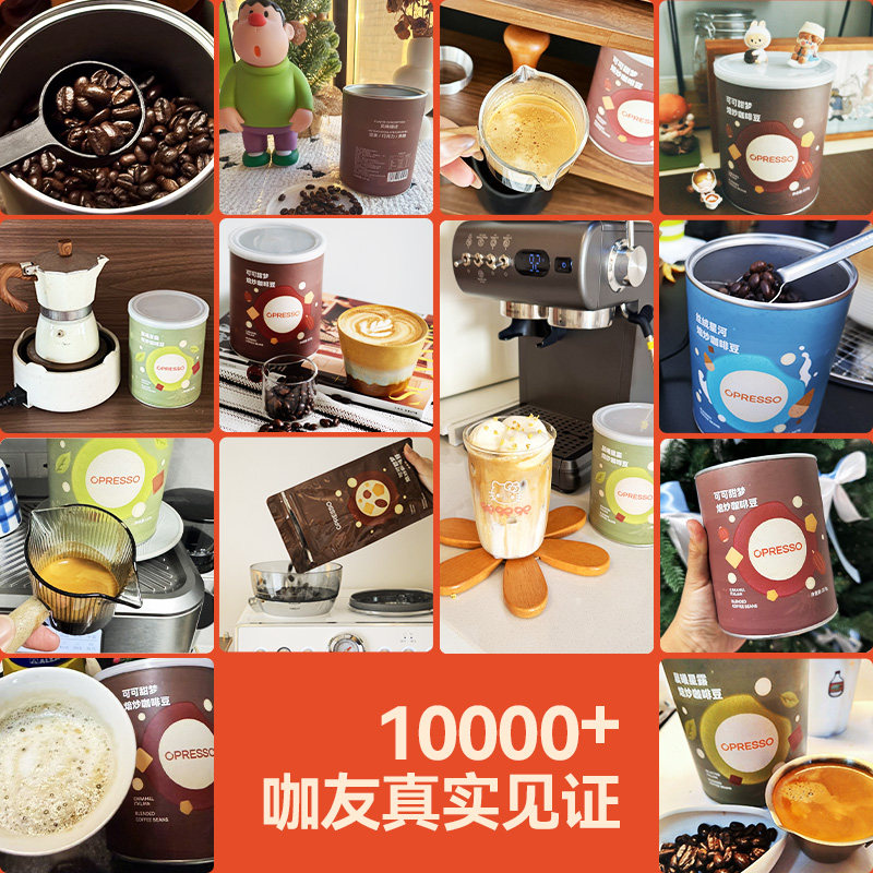 📚 Opresso丝绒星河拼配黑巧坚果无酸美式拿铁商用埃塞深烘培咖啡豆