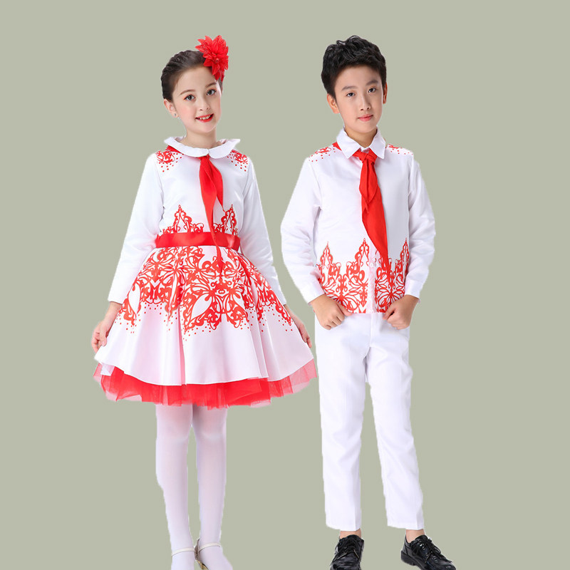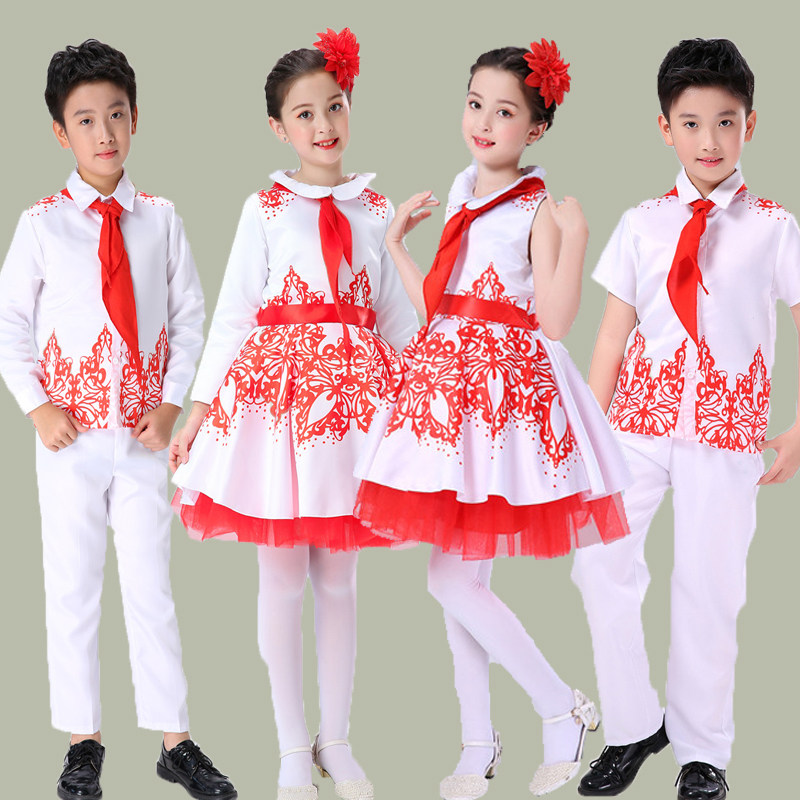 📚 儿童大合唱男孩主持人礼服学生红领巾朗诵比赛女童公主纱裙演出服