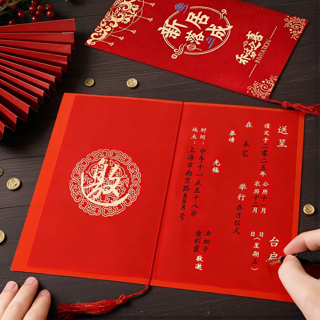 📚 乔迁请柬新居落成请帖搬新家入宅喜帖进宅上梁中式邀请函定制打印