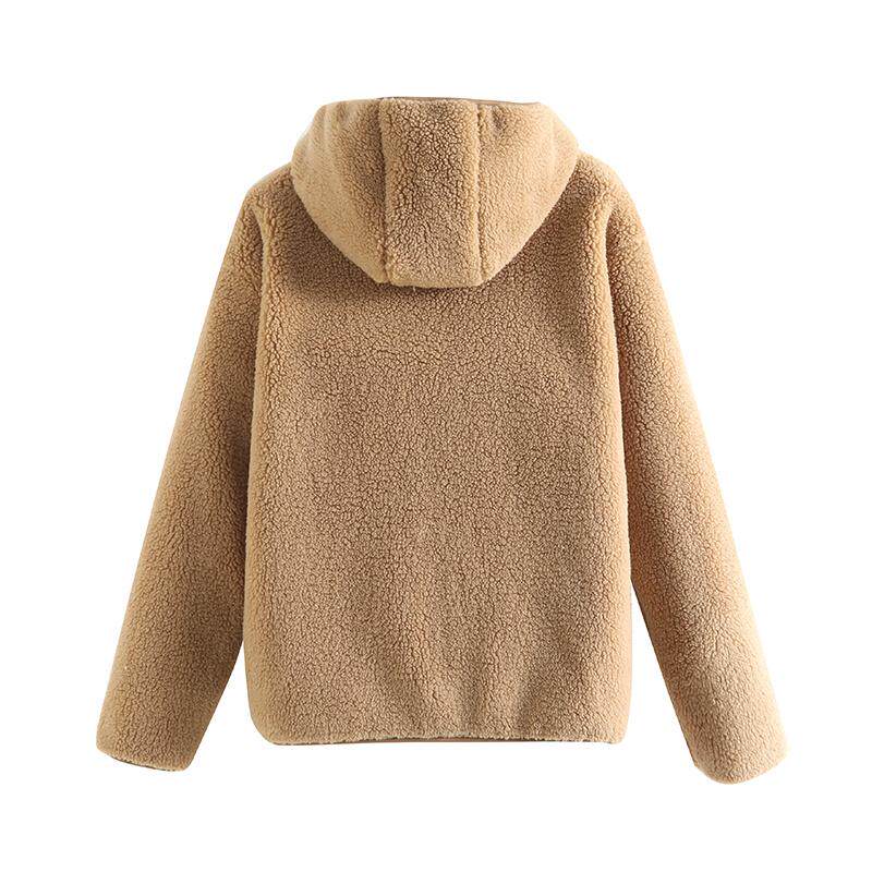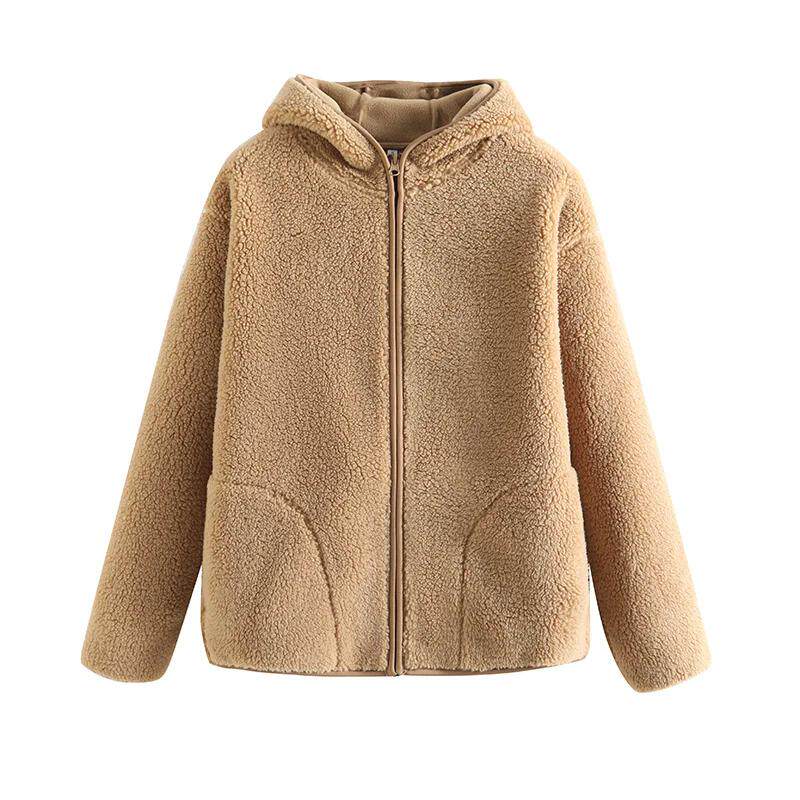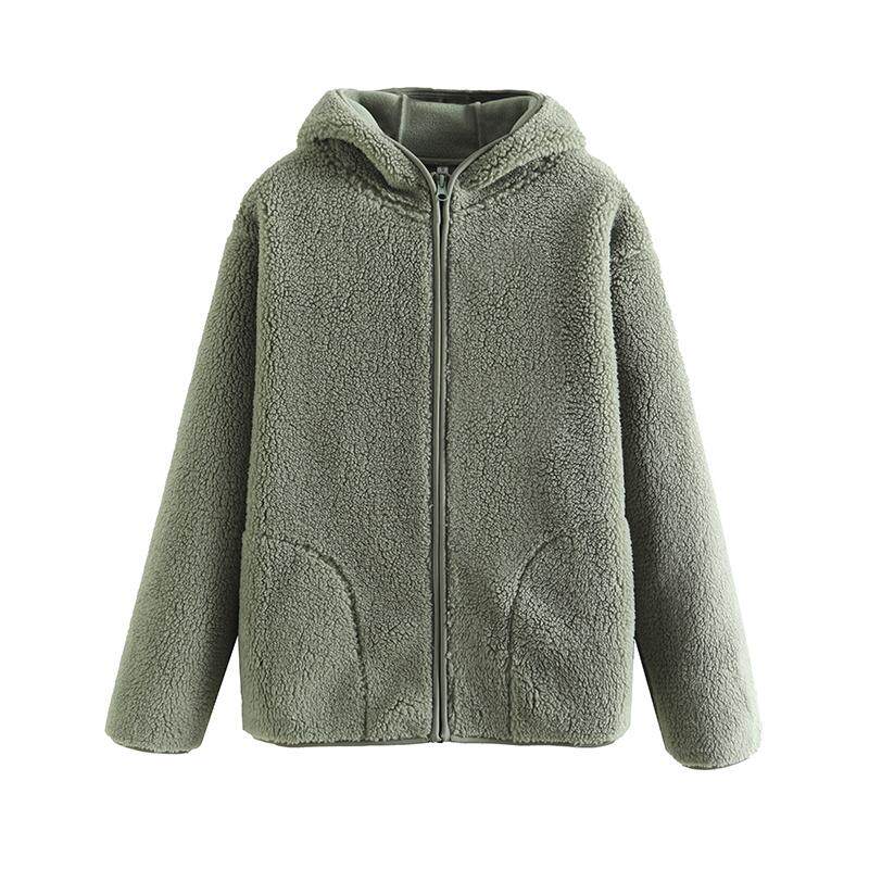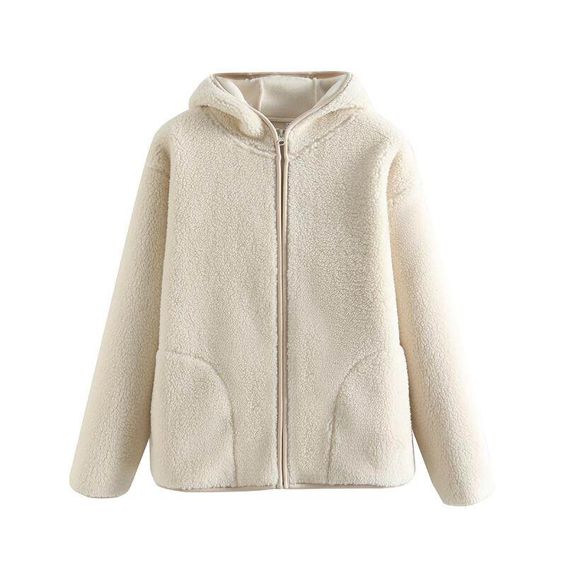 📚 女式长毛抓绒拉链连帽衫仿羊羔绒保暖舒适女外套秋冬款长袖女装新
