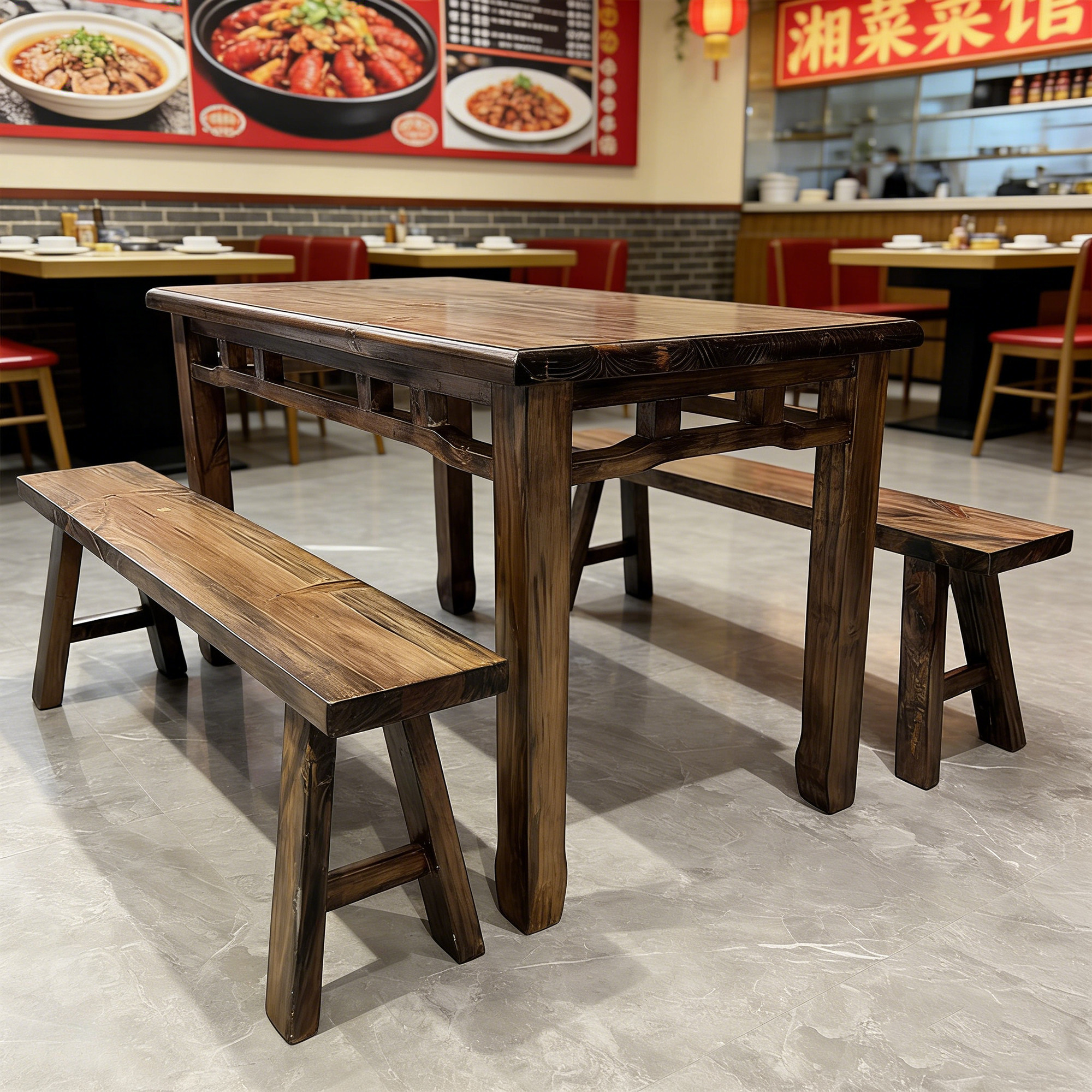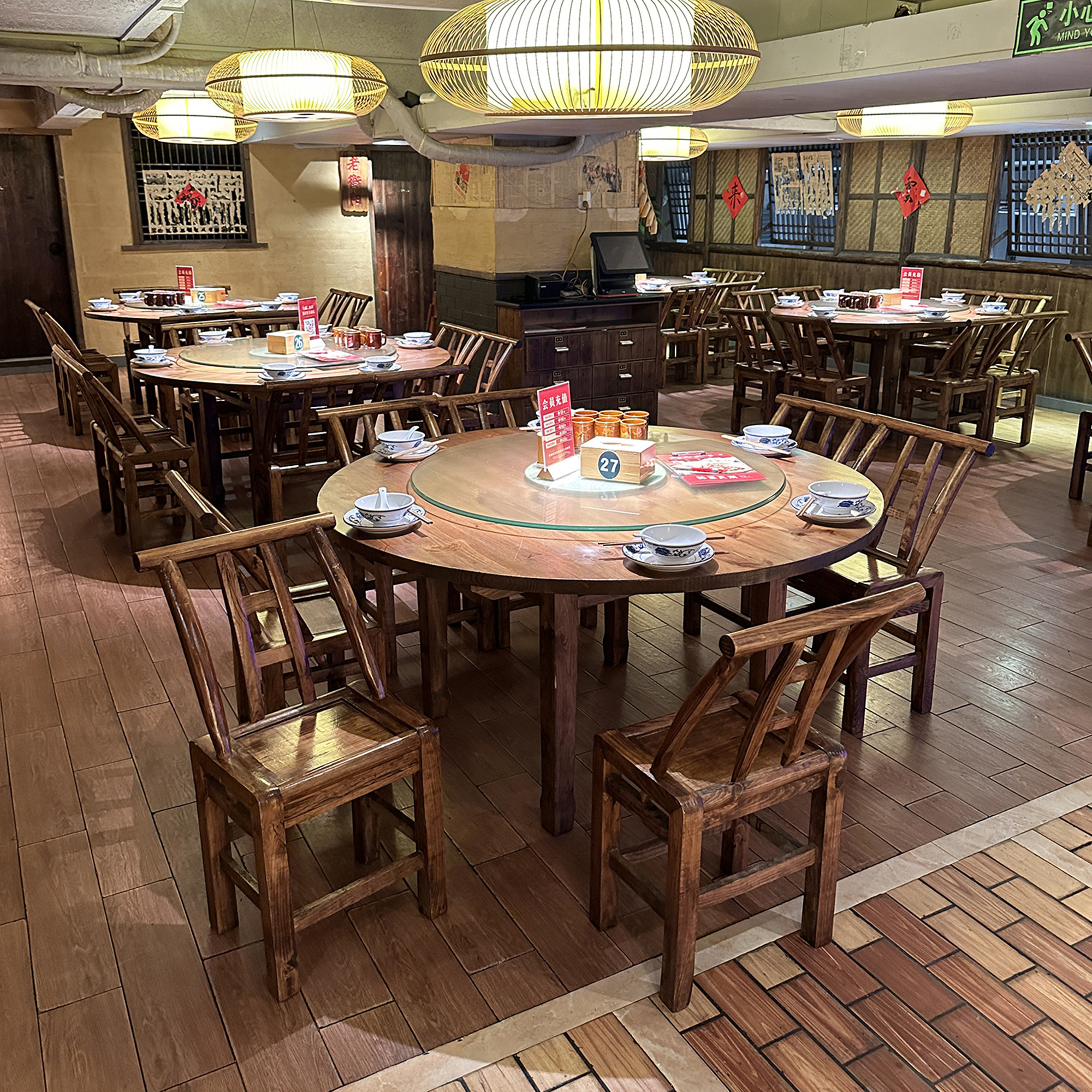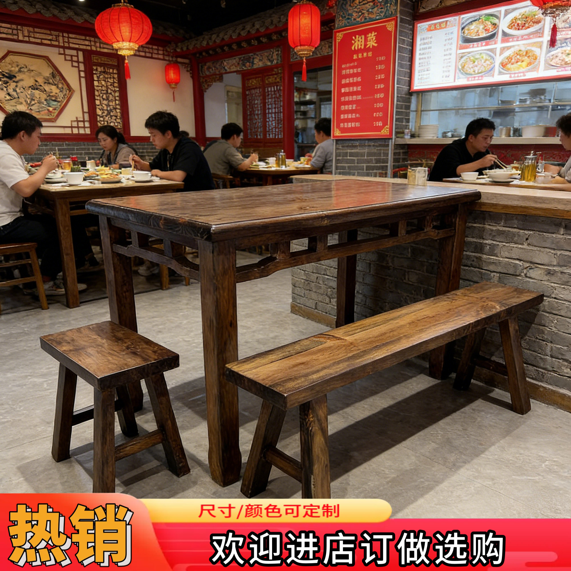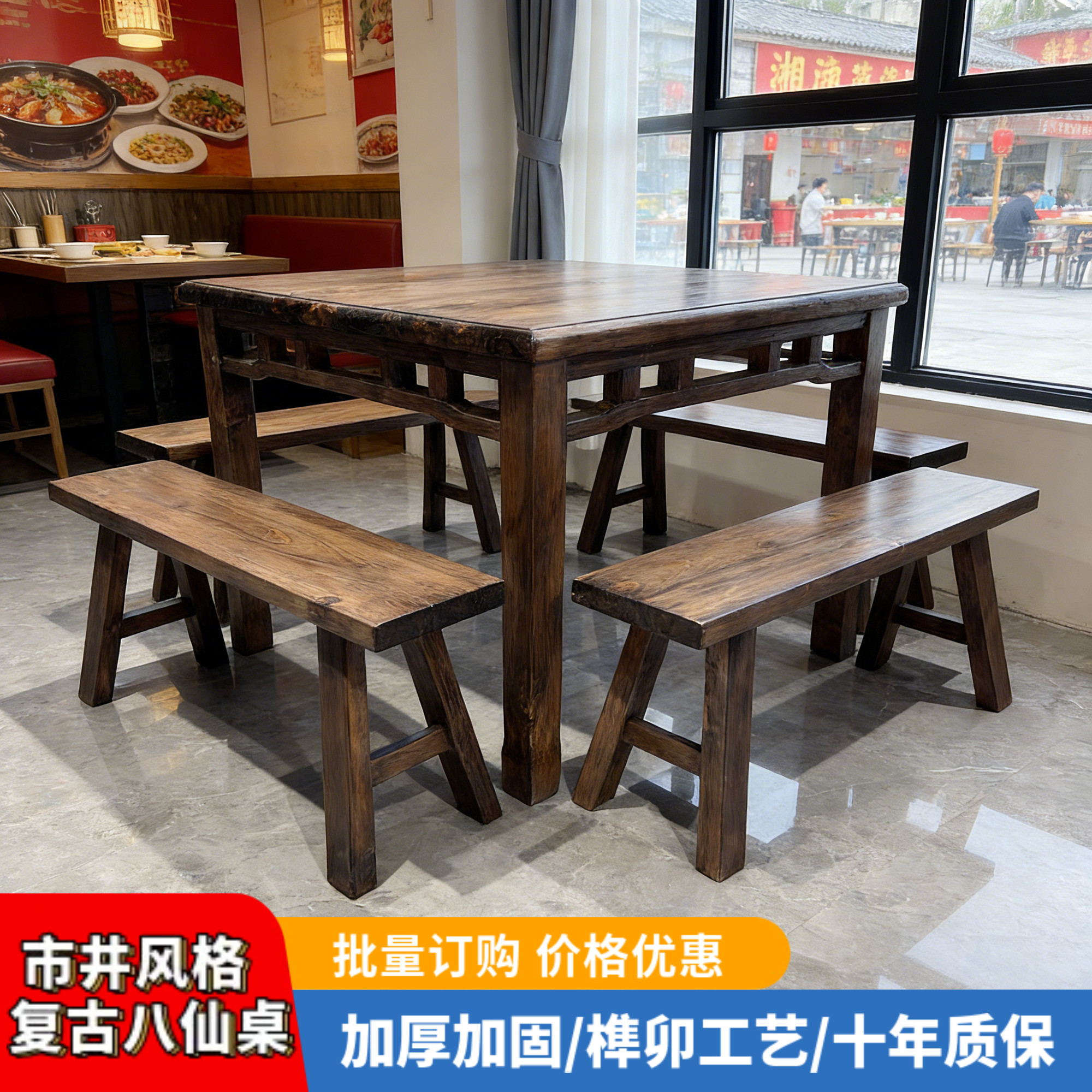 📚 方桌复古做旧市井风格桌椅面馆湘菜馆火锅饭店圆桌老式实木八仙桌