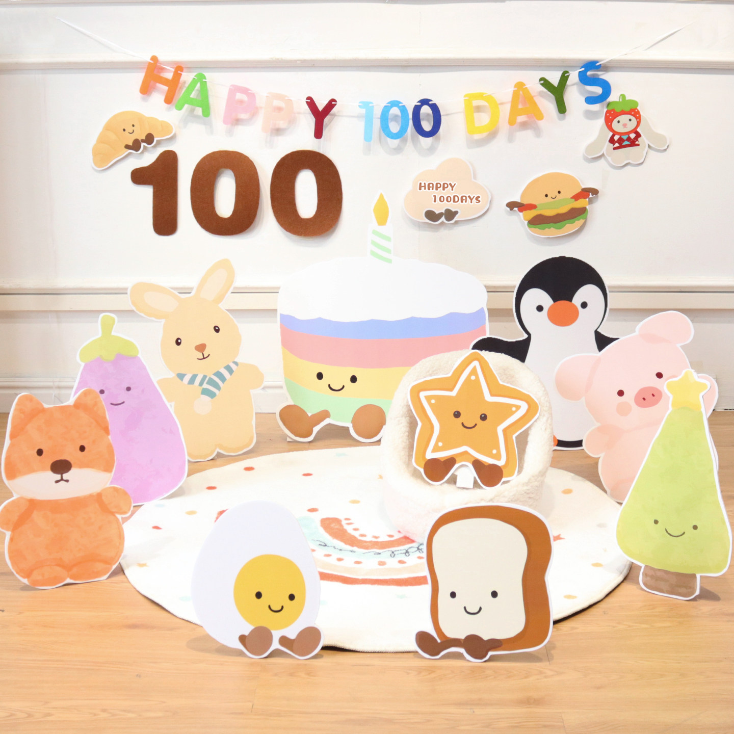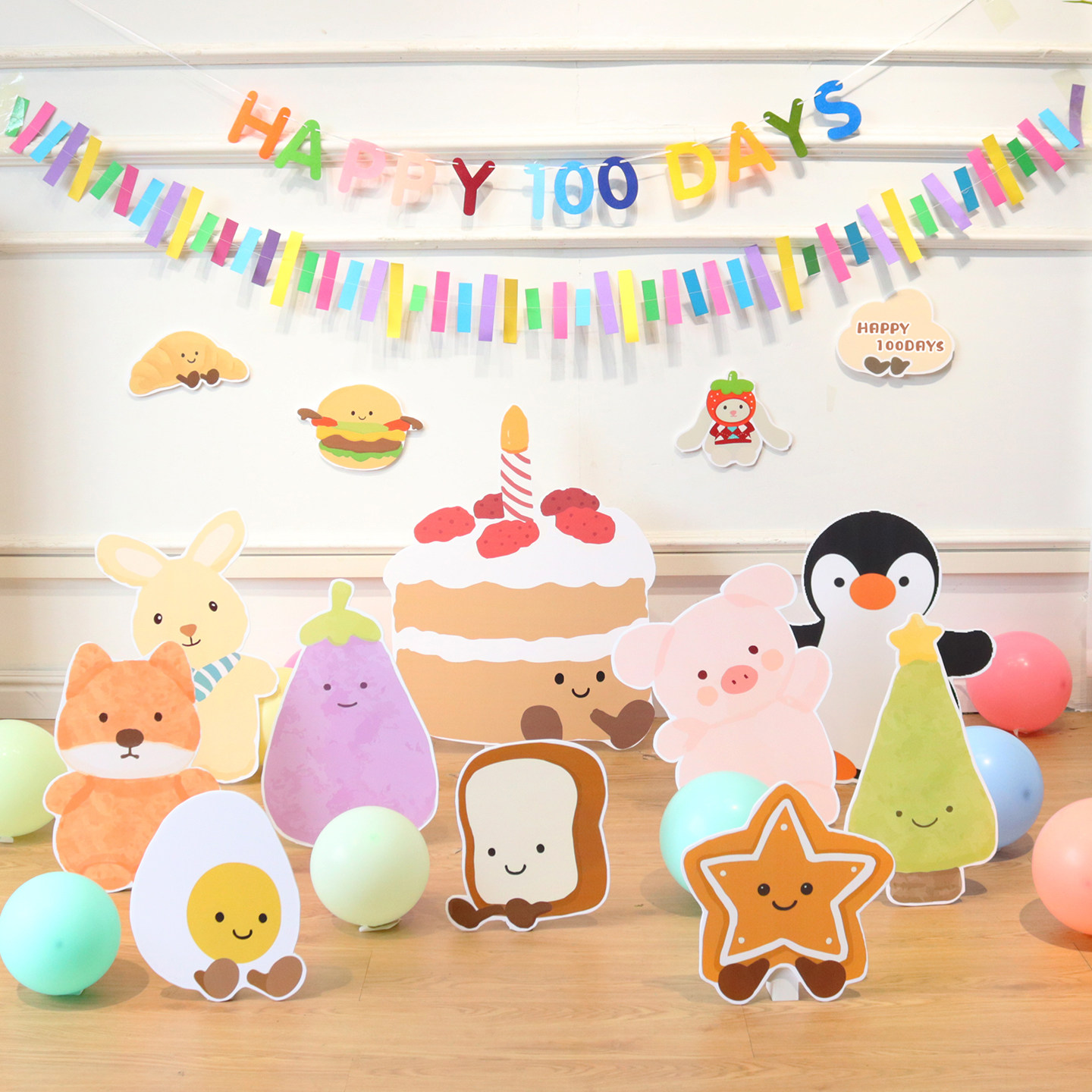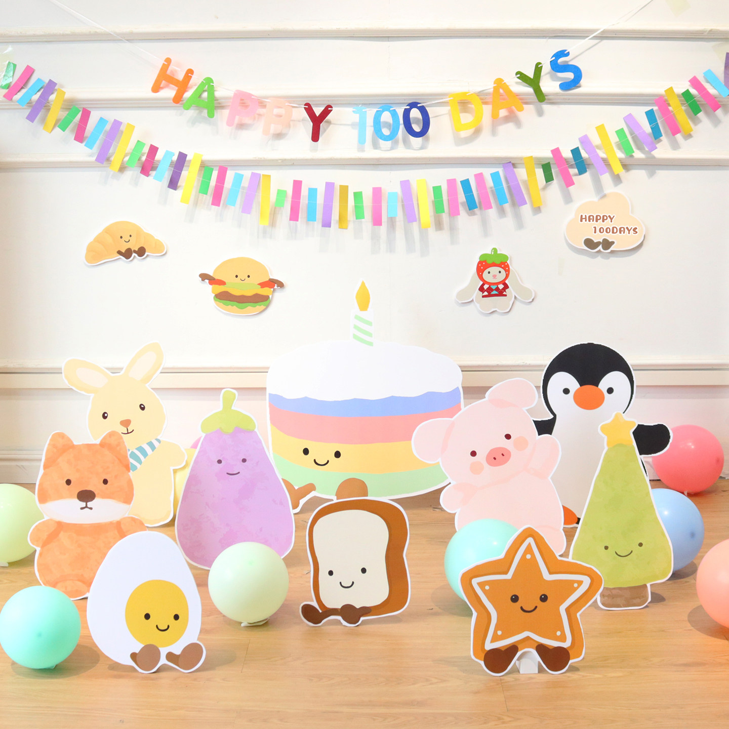 📚 jellycat主题宝宝百天布置奶油风蛋糕男女孩100拍照装饰拉旗KT板