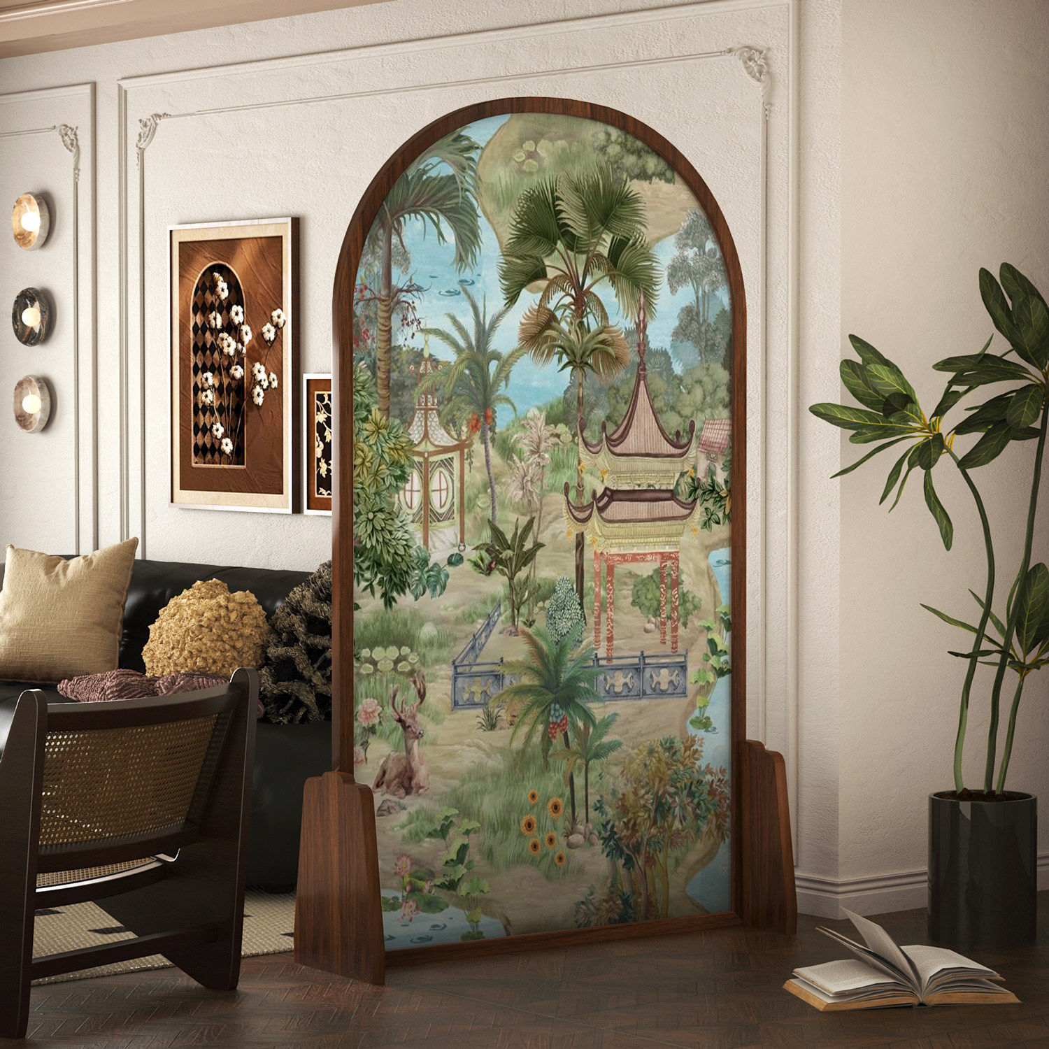 📚 法式中古艺术家用茶室屏风现代玄关隔断客厅实木透光进门办公移动