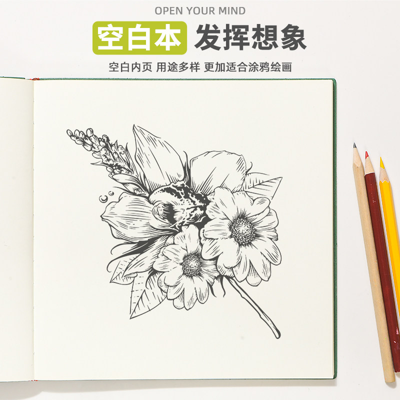 📚 方形空白本笔记本本子随身便携速写本空白页绘画本皮面记事本简约女生画画日记本手账本大学生旅行旅游盖章本