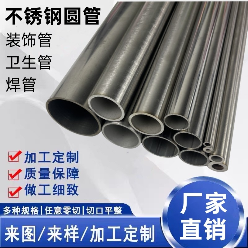 📚 201不锈钢圆管空心管薄管亮管大口径焊管水管装饰管激光切零加工