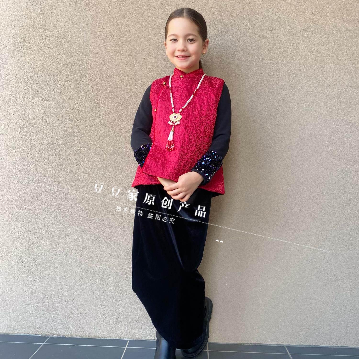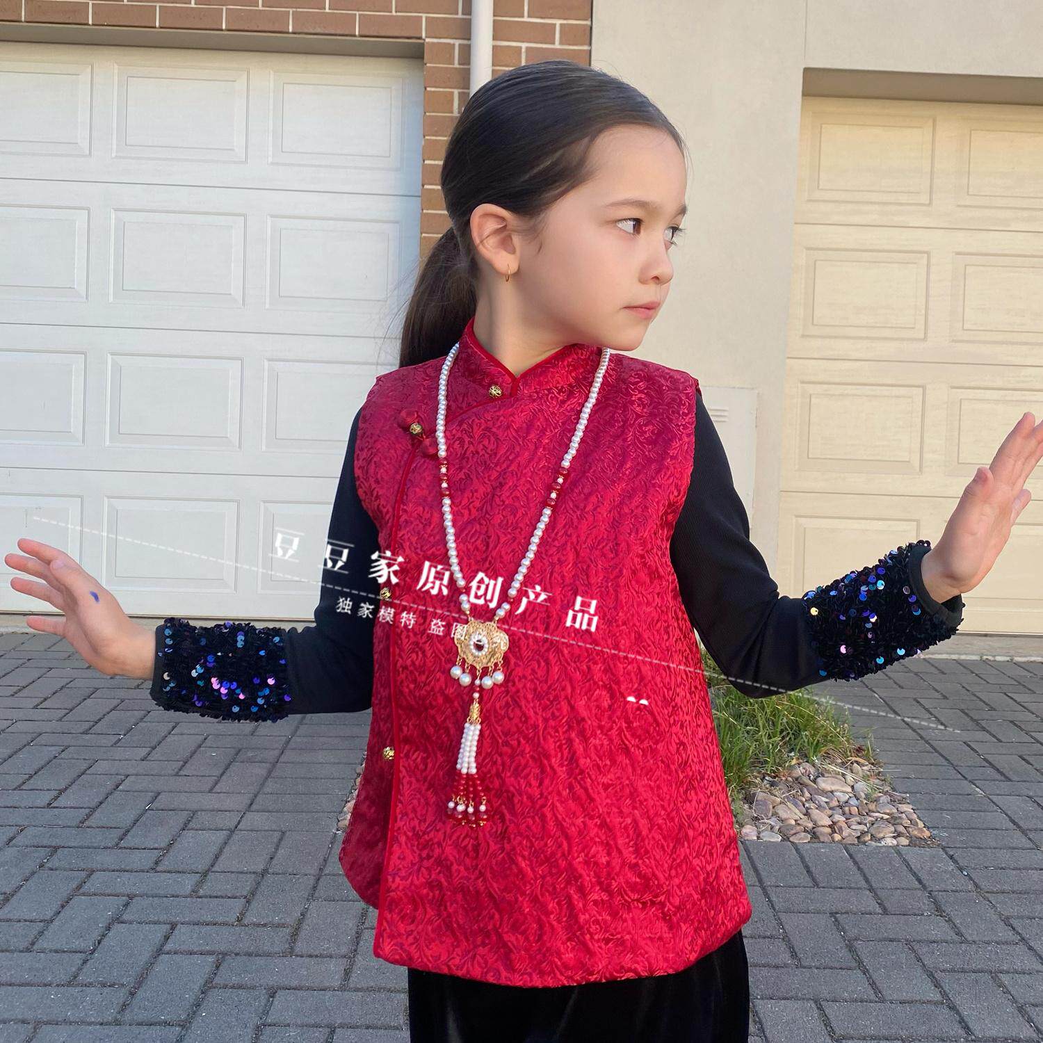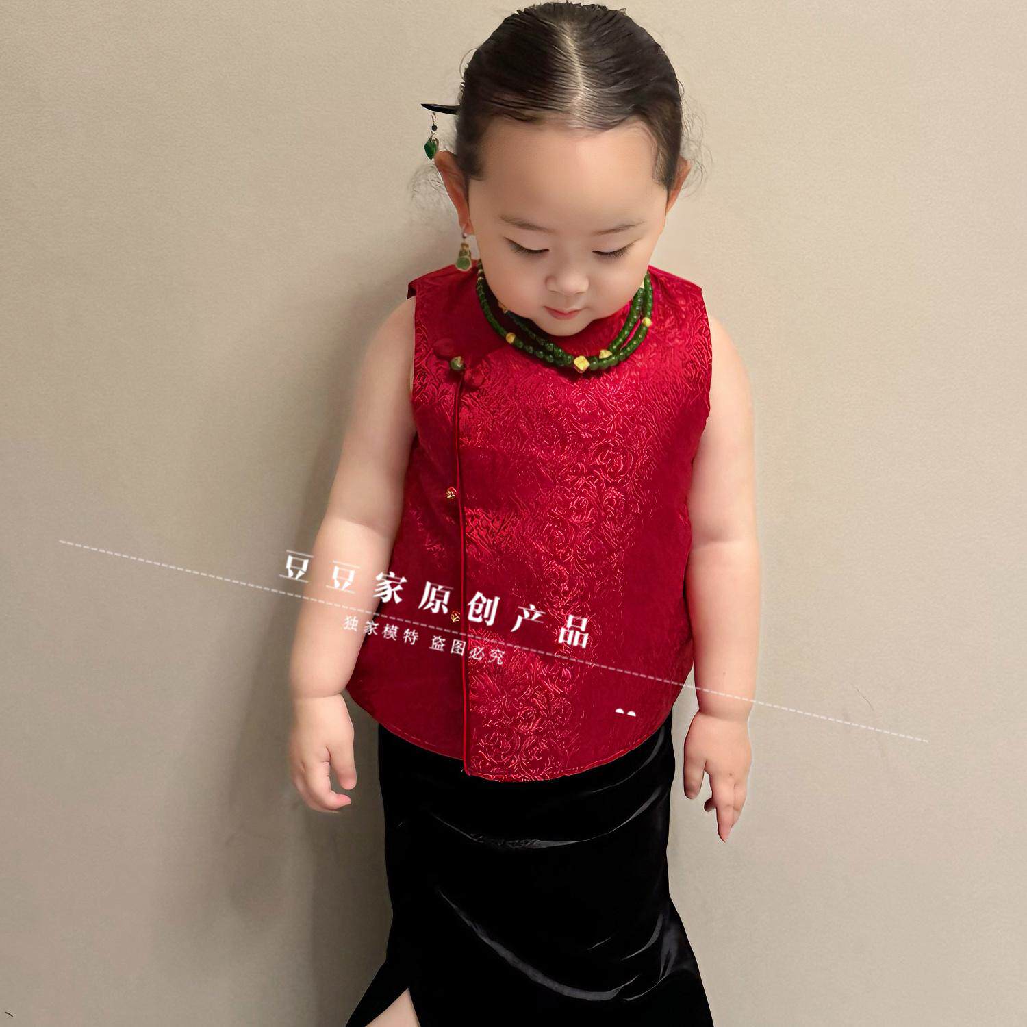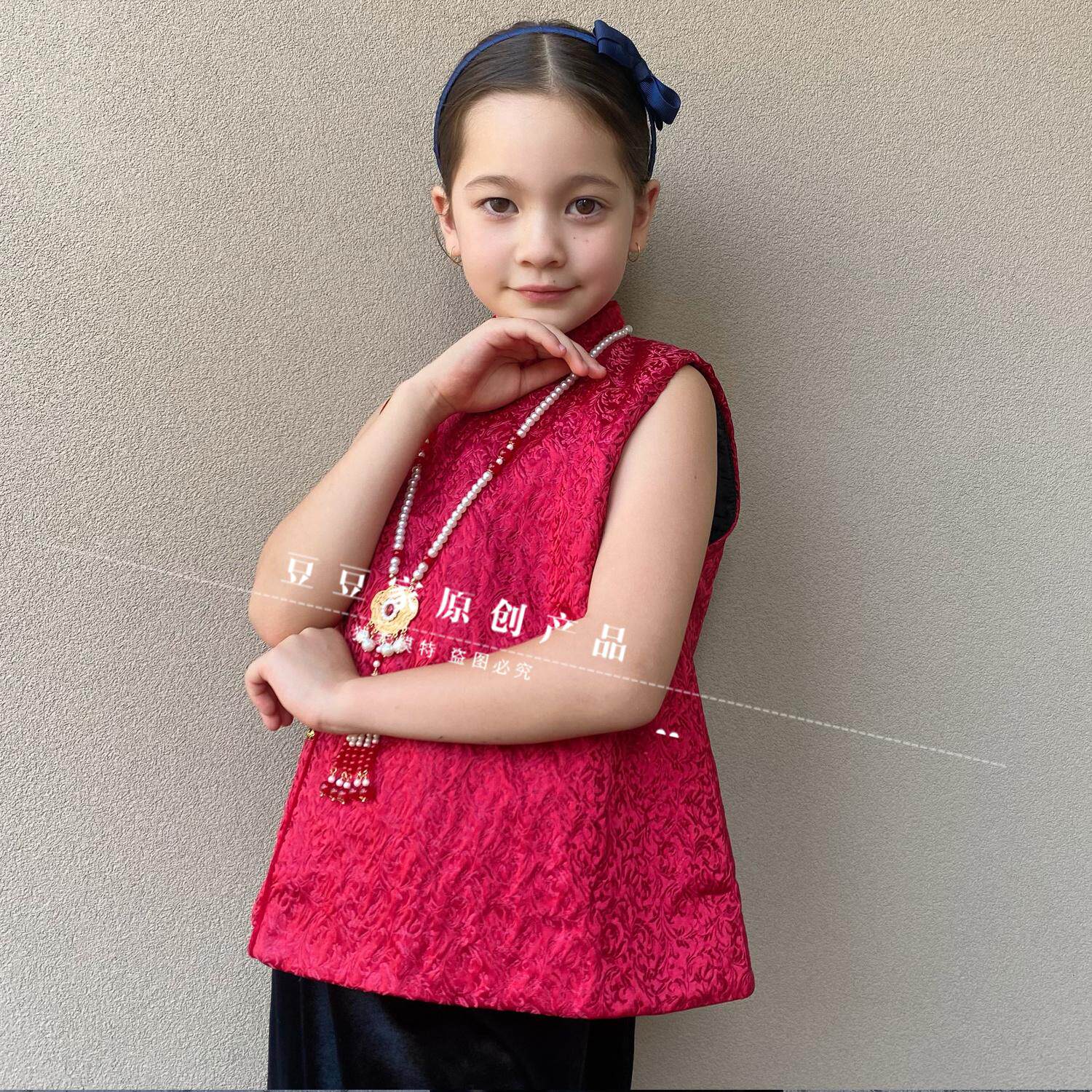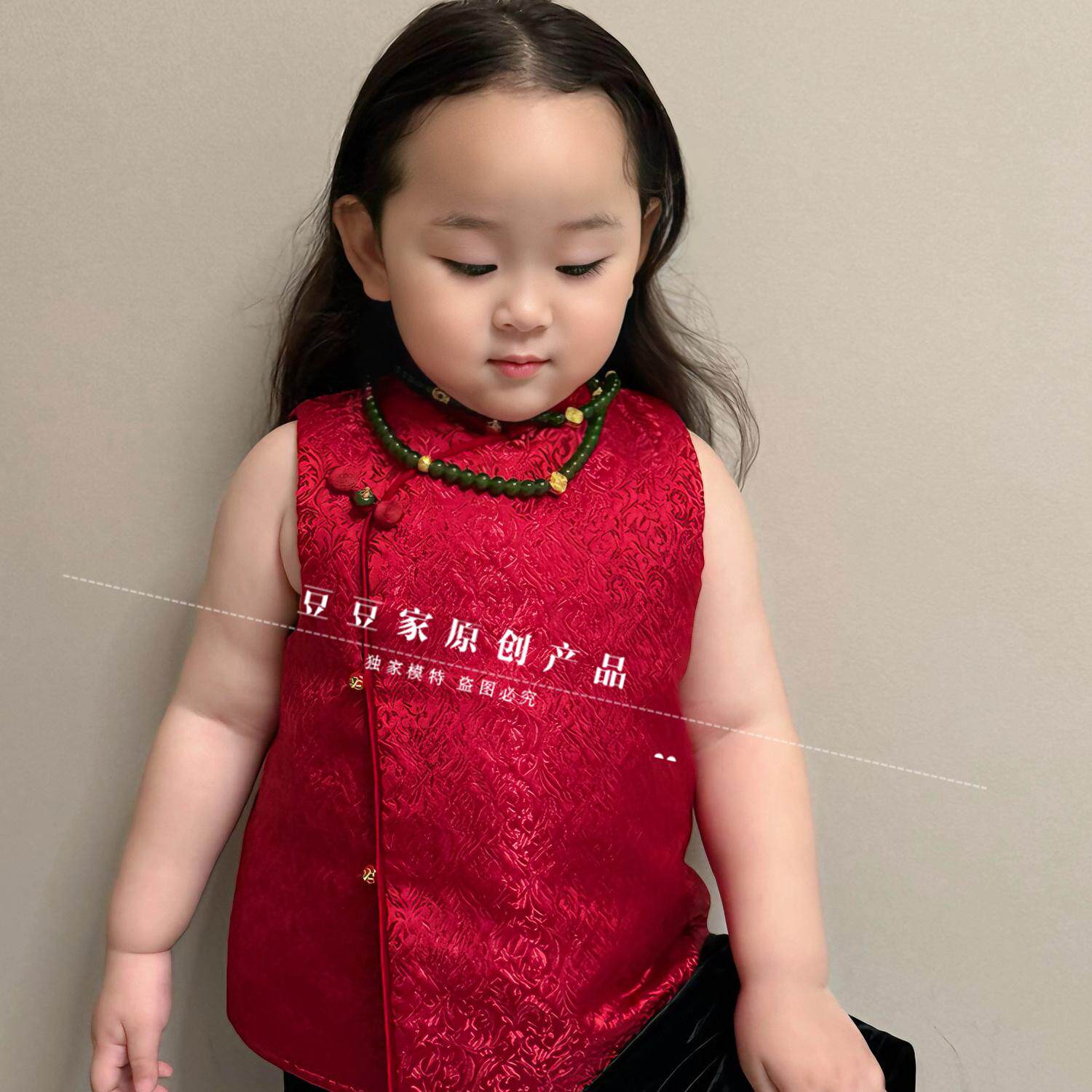 📚 女童马夹中国风红色儿童女宝周岁生日抓周礼服高端夹棉加厚马甲
