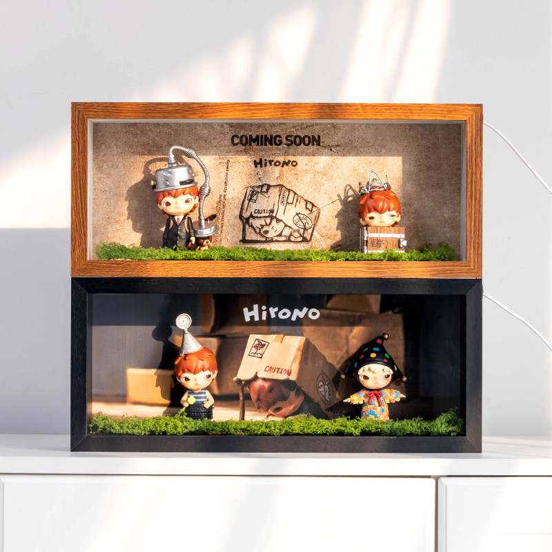 📚 泡泡玛特小野回声系列盲盒USB插电展示架手办展示柜造景灯光摆件
