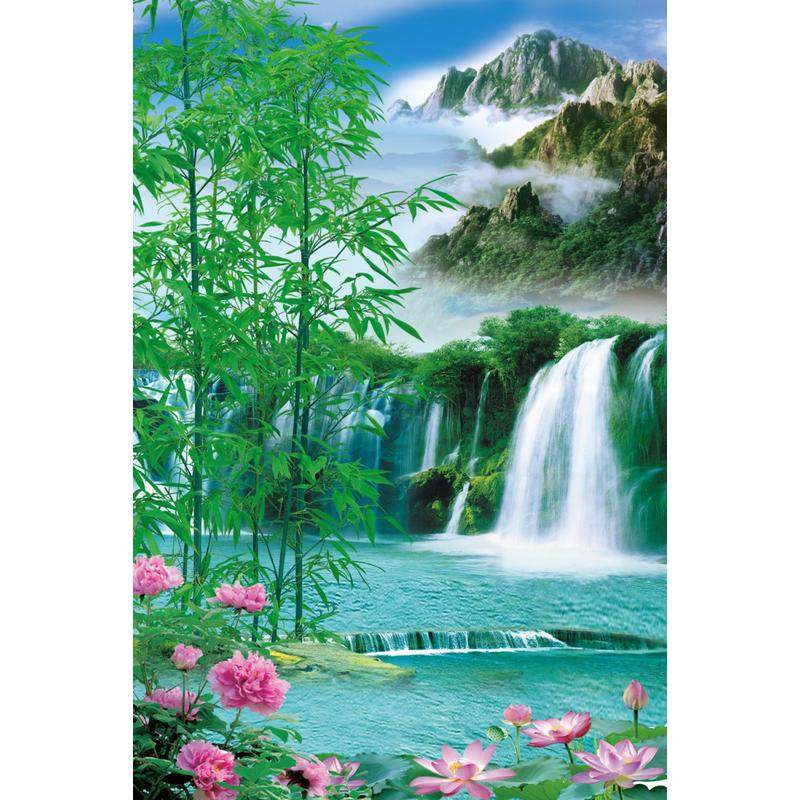 📚 流水生财竖版风景画家用走廊卧室背景墙山水画竹报平安海报装饰画