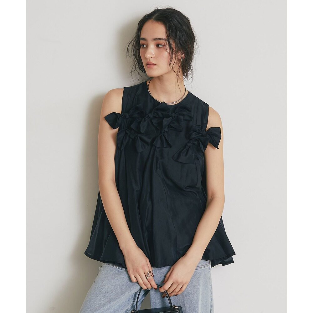 📚 日本直邮&. NOSTALGIA 女装 丝质感蝴蝶结无袖上衣 1204282