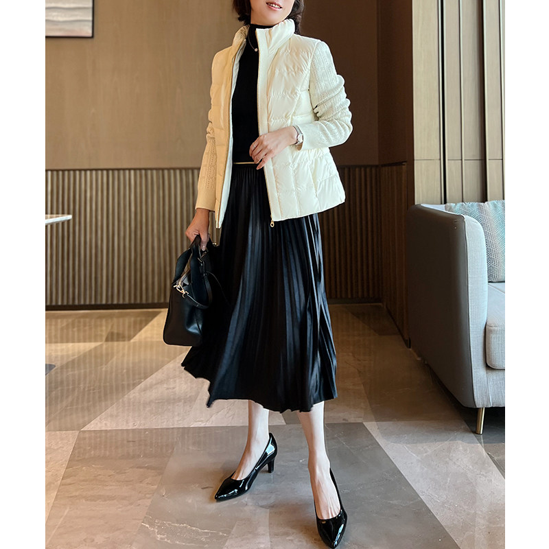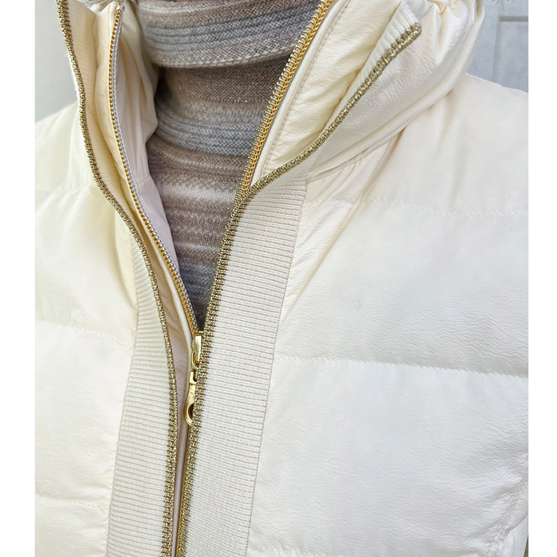 📚 品牌高端 2022新款白鹅绒 中等厚度羽绒服女短款 修身米白色