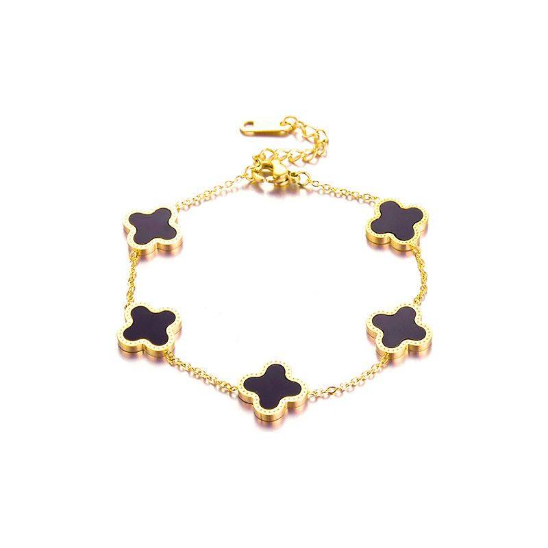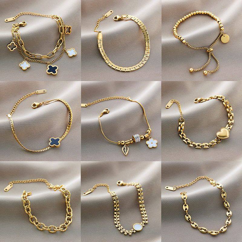 📚 欧美不掉色时尚钛钢手链女五叶草镶钻ins风个性镀18K金小众高级感