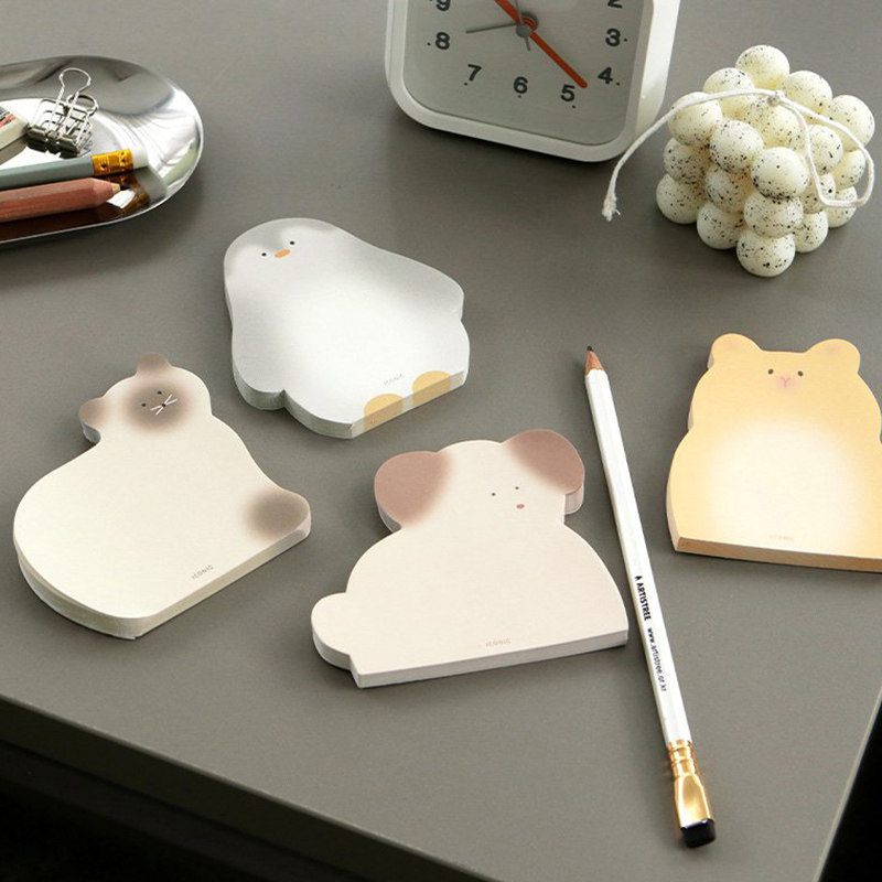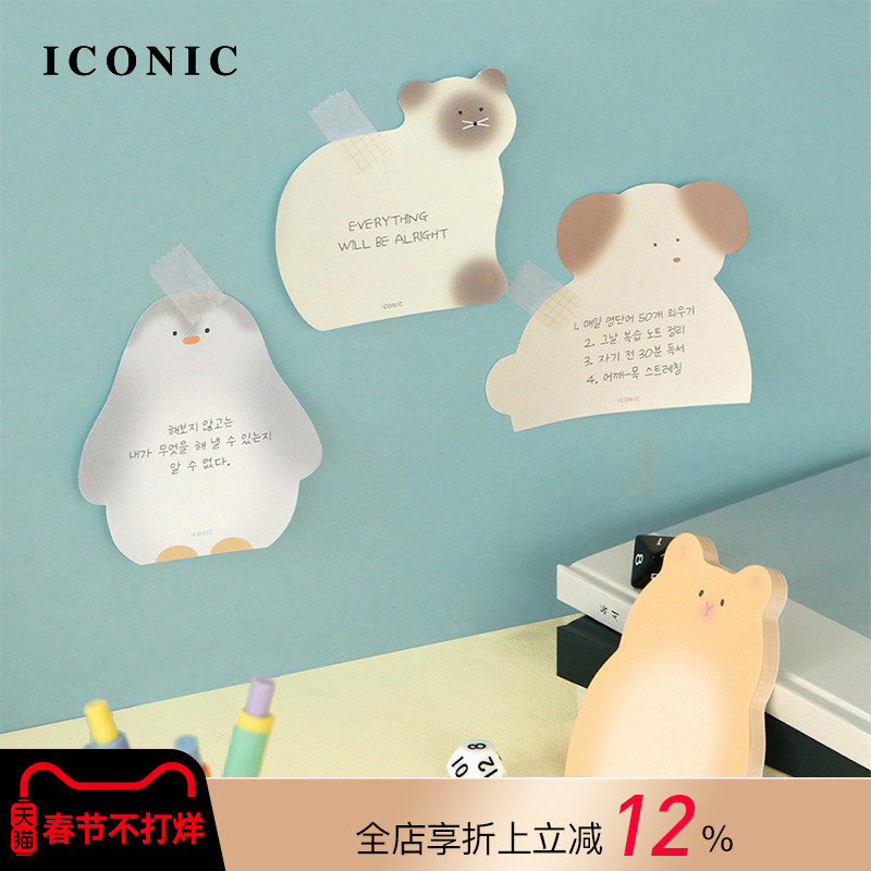 📚 韩国ICONIC可爱动物造型彩色印花便签留言备忘待办清单温暖治愈配色60张手帐装饰仓鼠猫咪企鹅小狗学生白领