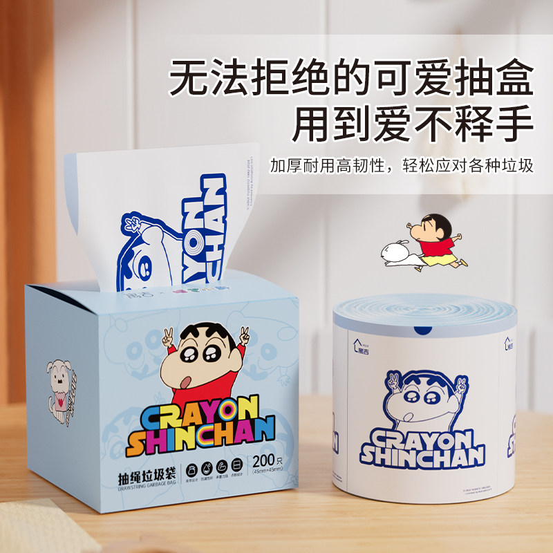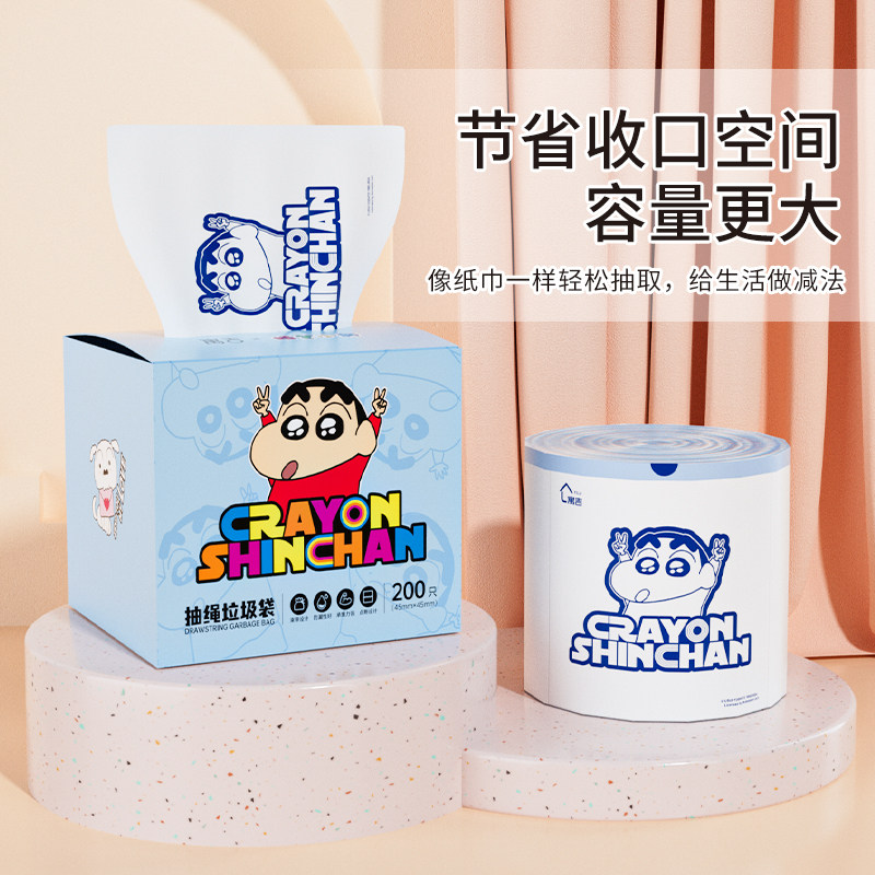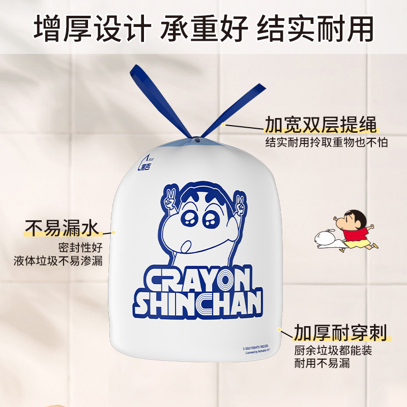 📚 蜡笔小新免撕抽绳式大容量垃圾袋承重强不脏手一抽即用加厚加大
