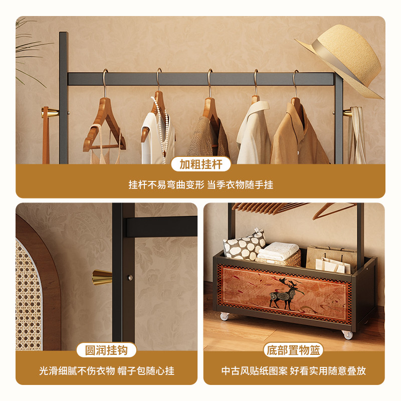 📚 挂衣架落地卧室衣帽间中古风衣帽架置物2025新款床边放脱下的衣服