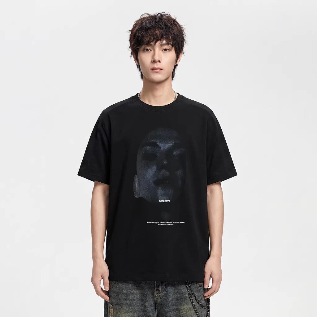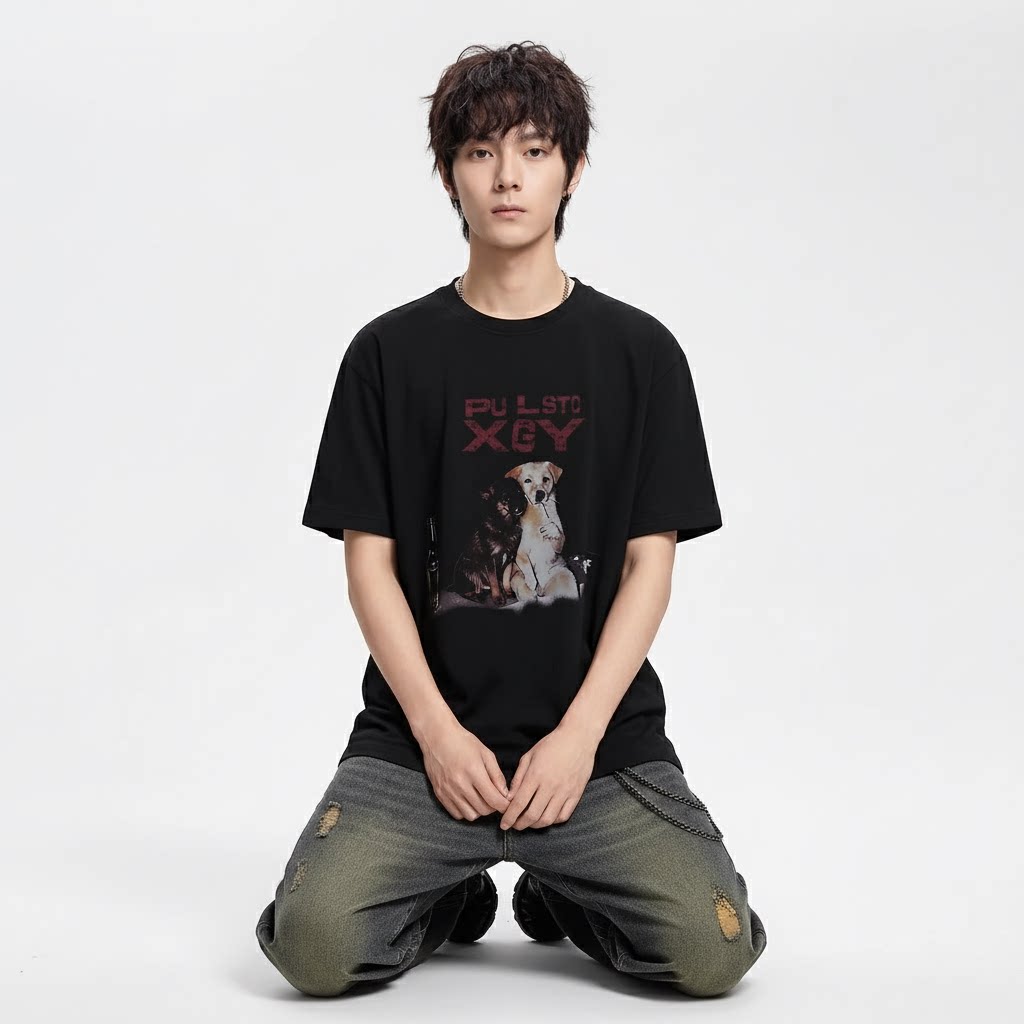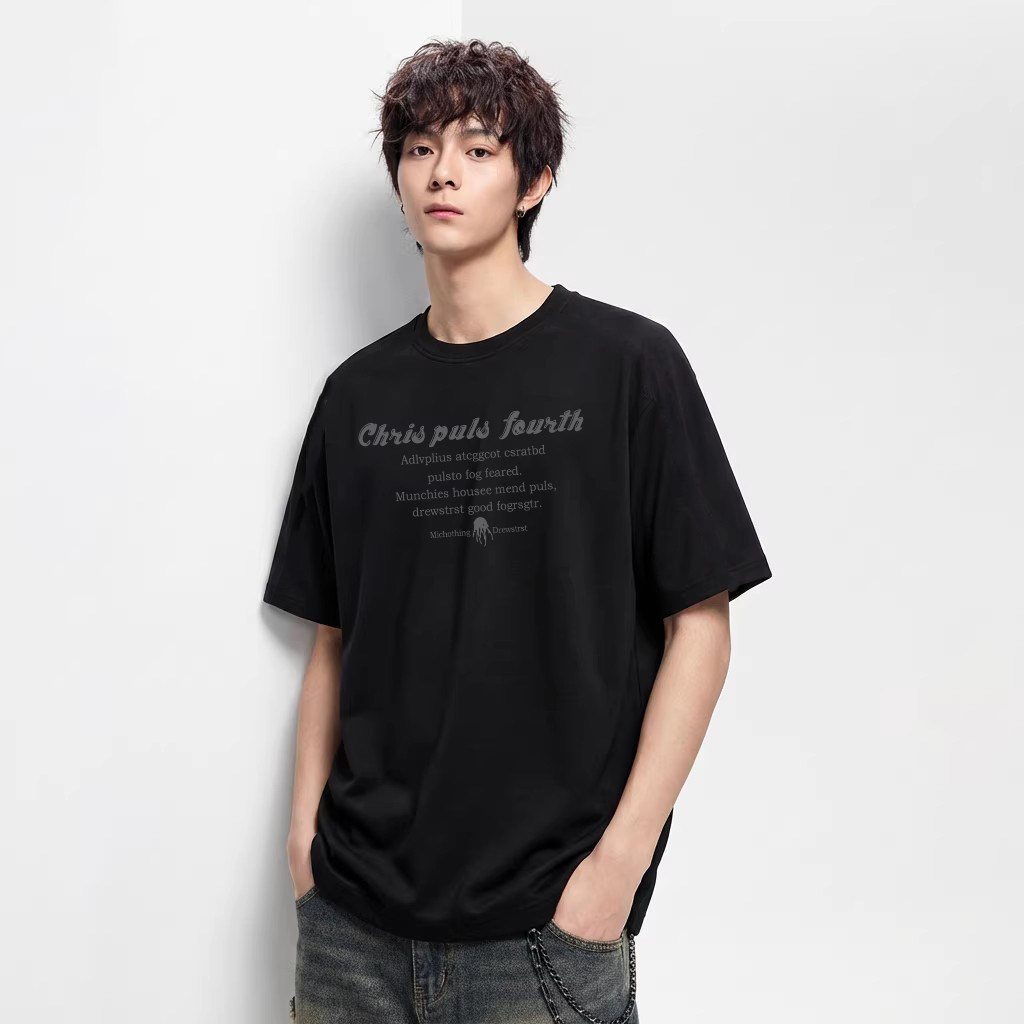 📚 WXWN潮牌美式简约字母印花黑色短袖T恤男夏季重磅宽松青少年上衣
