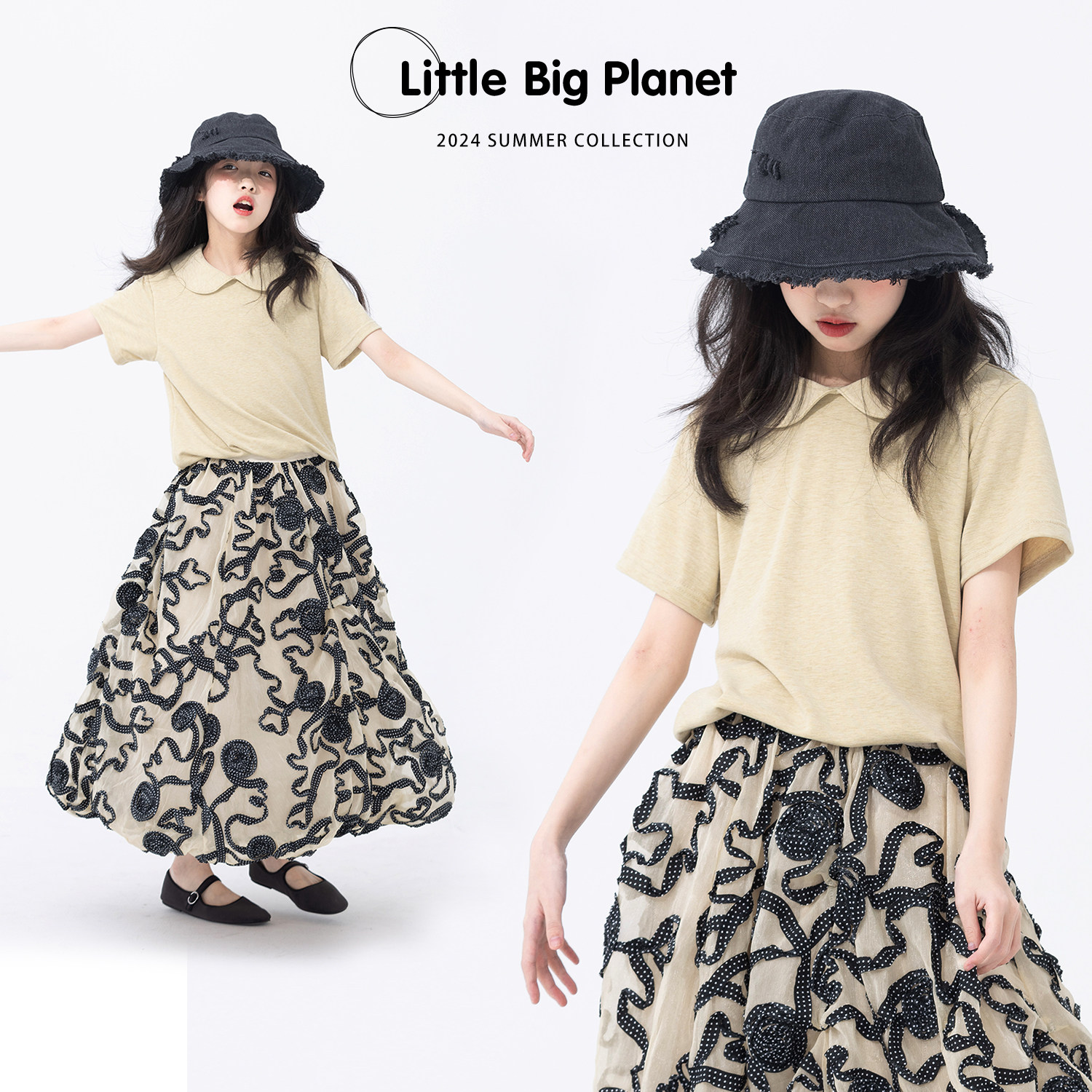 📚 小小大星球童装 两色柔软舒适娃娃领短袖 夏天百搭女童甜美T恤