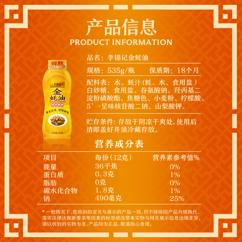 📚 李锦记金蚝油挤挤瓶装耗油挤挤压瓶家用纯正上等食用蚝汁耗油535g