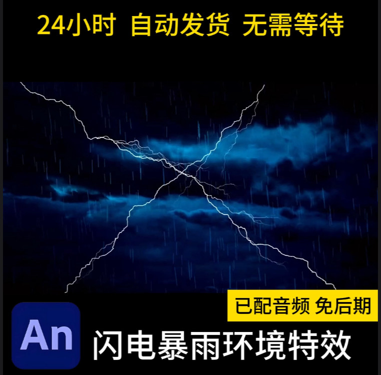 📚 An雷电闪电背景打雷下雨天气环境沙雕动画特效素材乌云密布
