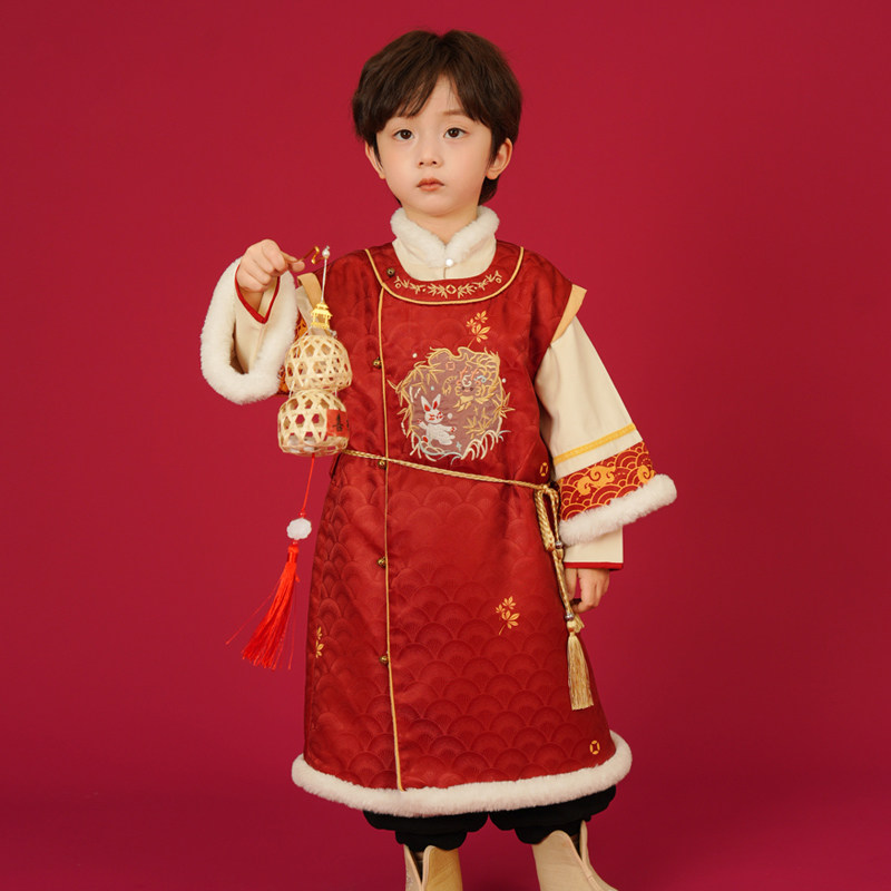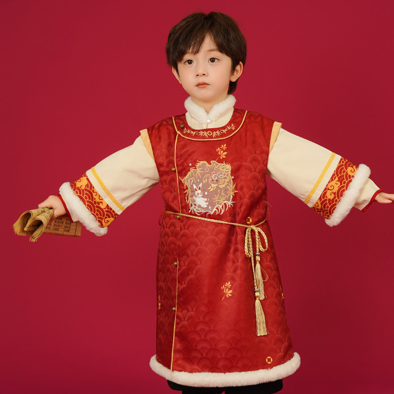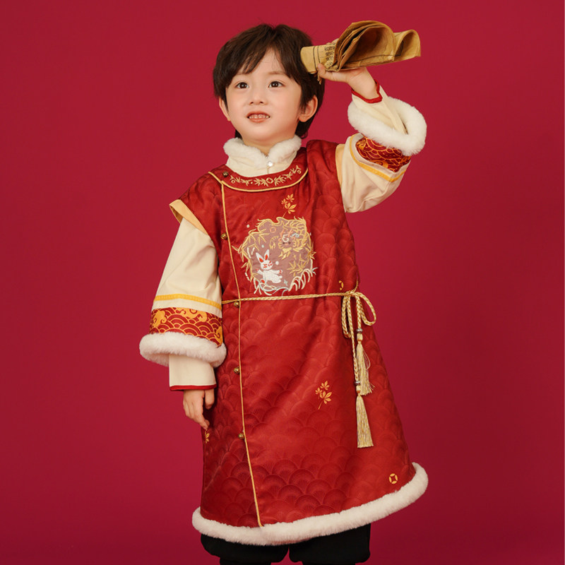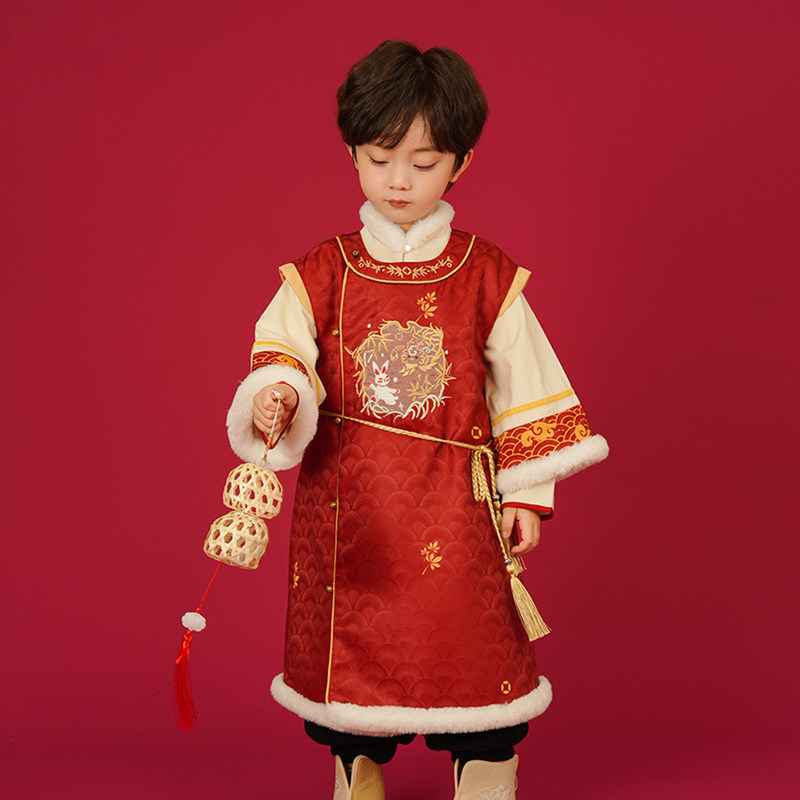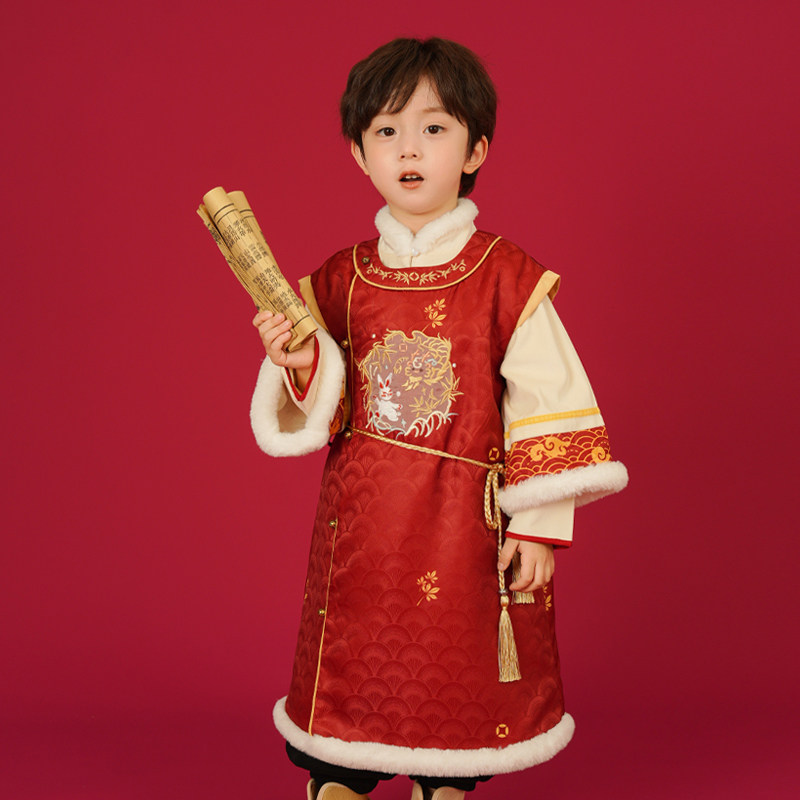 📚 汉服男童冬装宝宝加厚明制长袍小男孩喜庆龙年拜年服新年唐装年服
