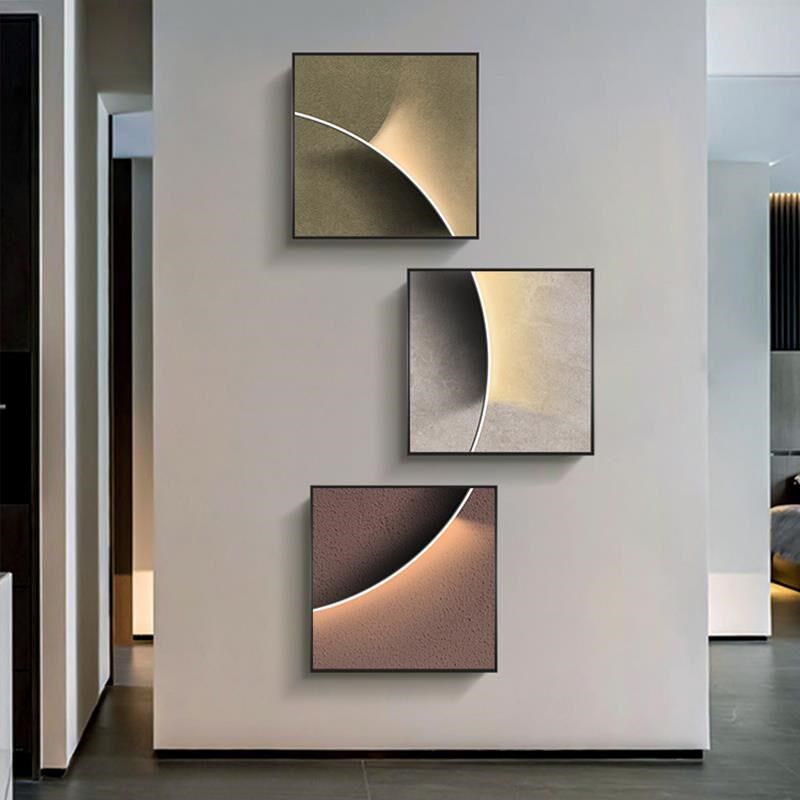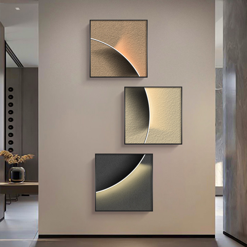 📚 现代黑白灰玄幻装饰画发光客厅艺术挂画极简楼梯玄关画正方形壁画
