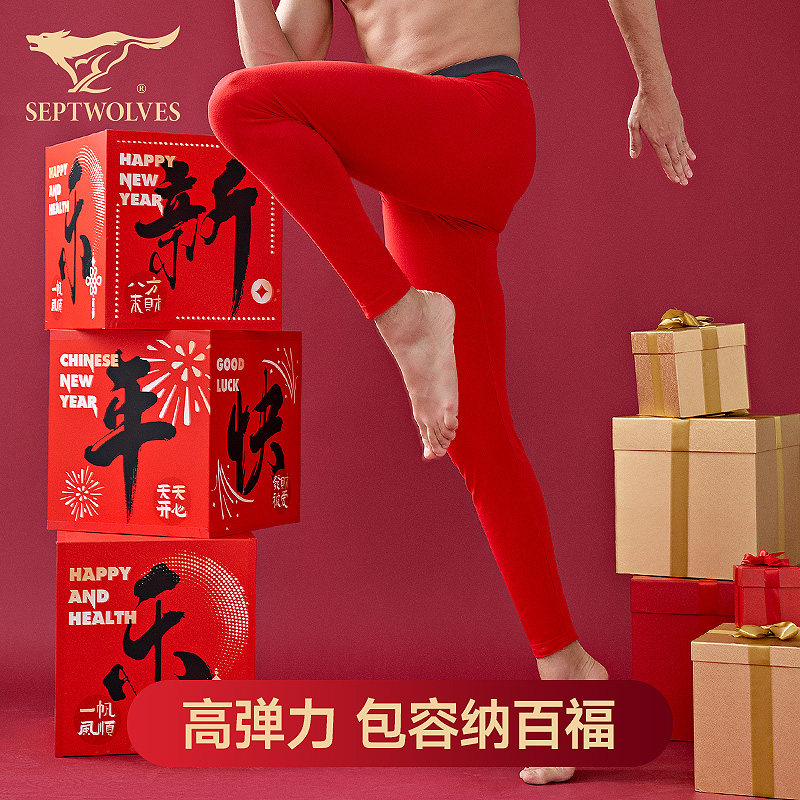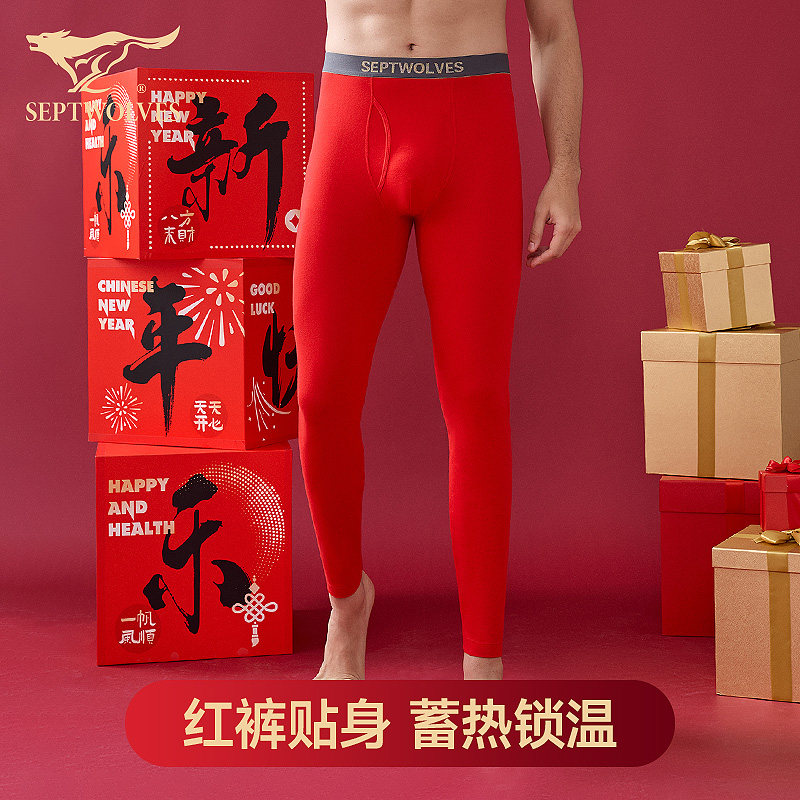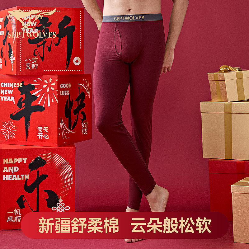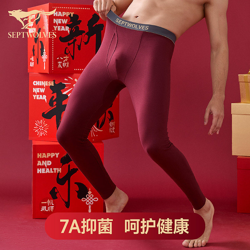 📚 七匹狼青少年本命年新疆棉秋裤男士酒红色大码2026马年保暖衬线裤