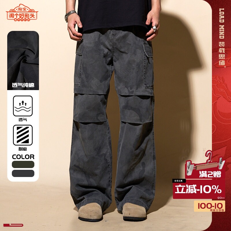📚 LOADMIND复古美式迷彩工装裤子男休闲宽松阔腿百搭长裤直筒伞兵厚