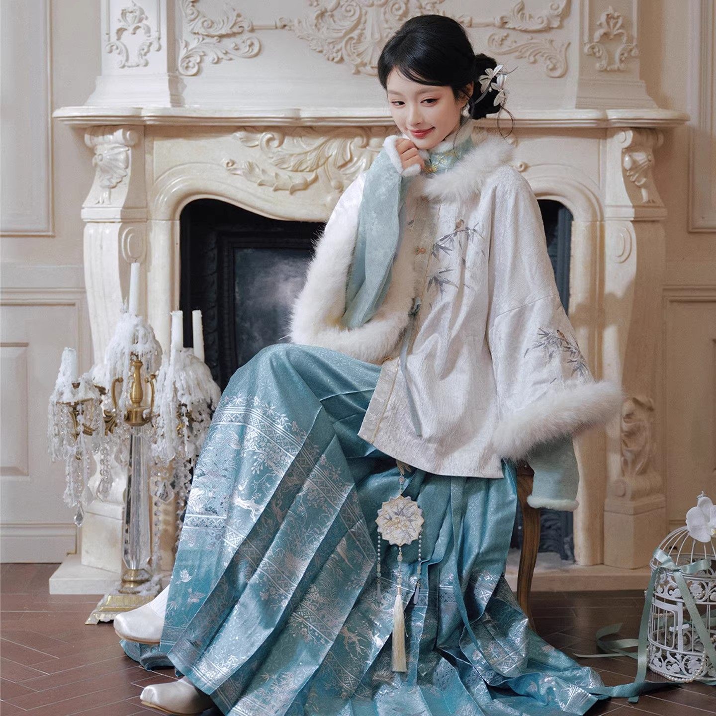📚 古装明制汉服女冬季新中式对襟琵琶袖昭君袄国风日常拜年过年套装