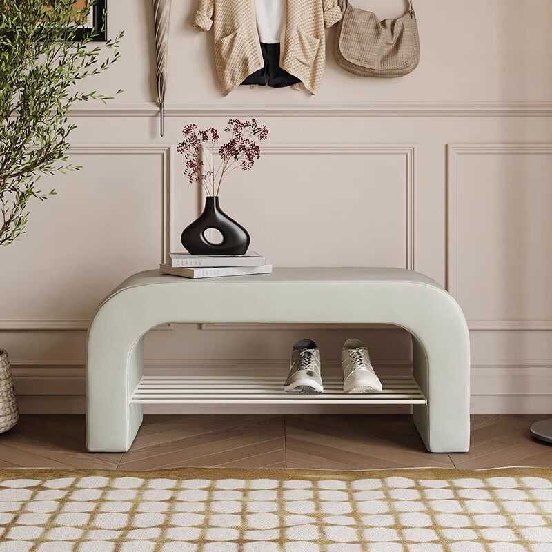 📚 法式入户换鞋凳卧室床尾凳长凳客厅纳帕皮沙发凳子奶油风可坐鞋架