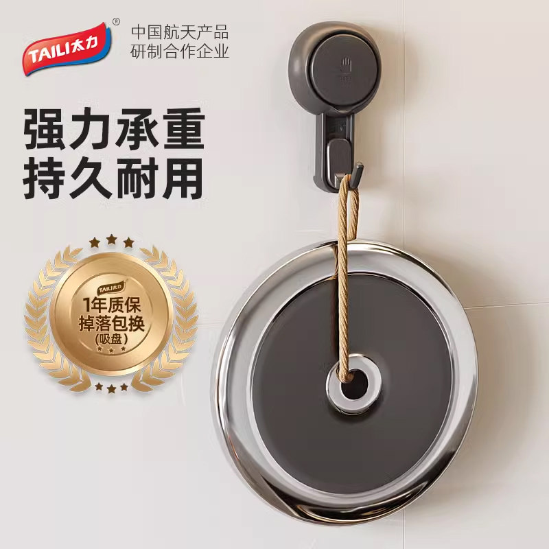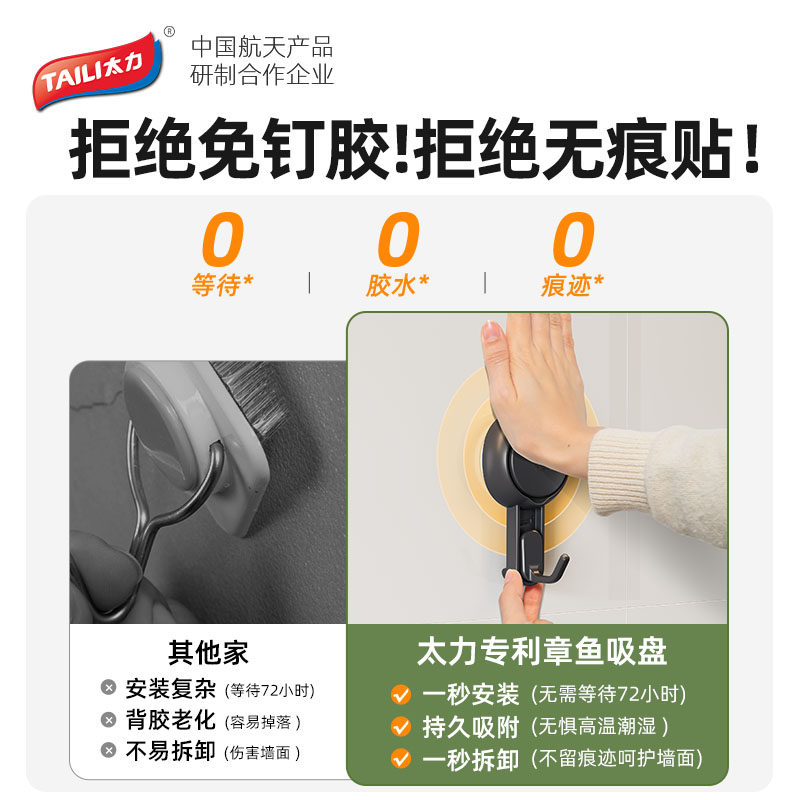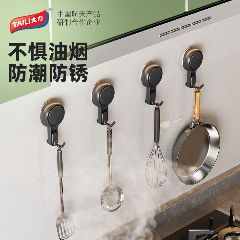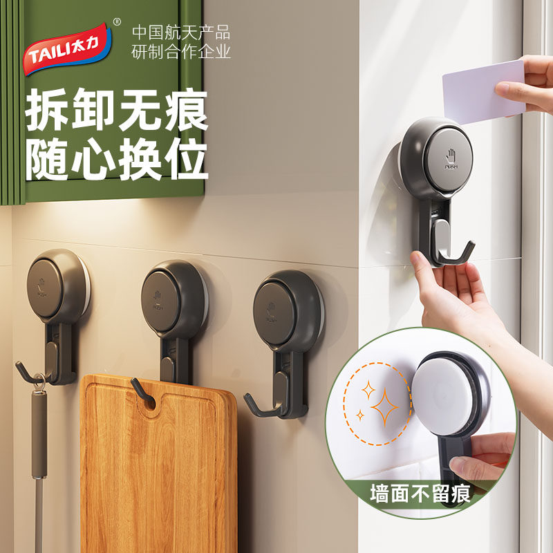 📚 太力吸盘挂钩免打孔强力承重墙壁无痕粘胶毛巾真空粘钩厨房置物架
