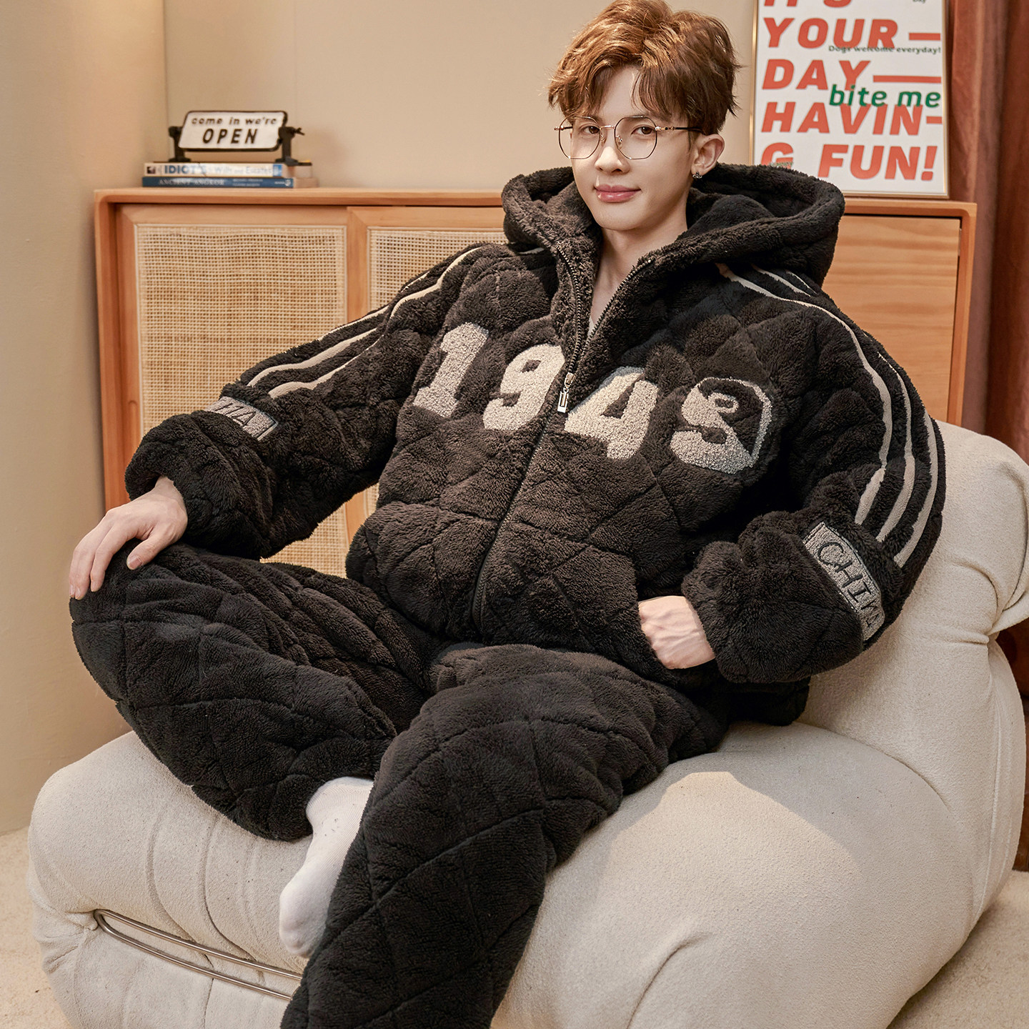 🍁冬日温暖新宠,珊瑚绒睡衣男士冬季三层夹棉加厚加绒青少年男款家居服来啦!👕